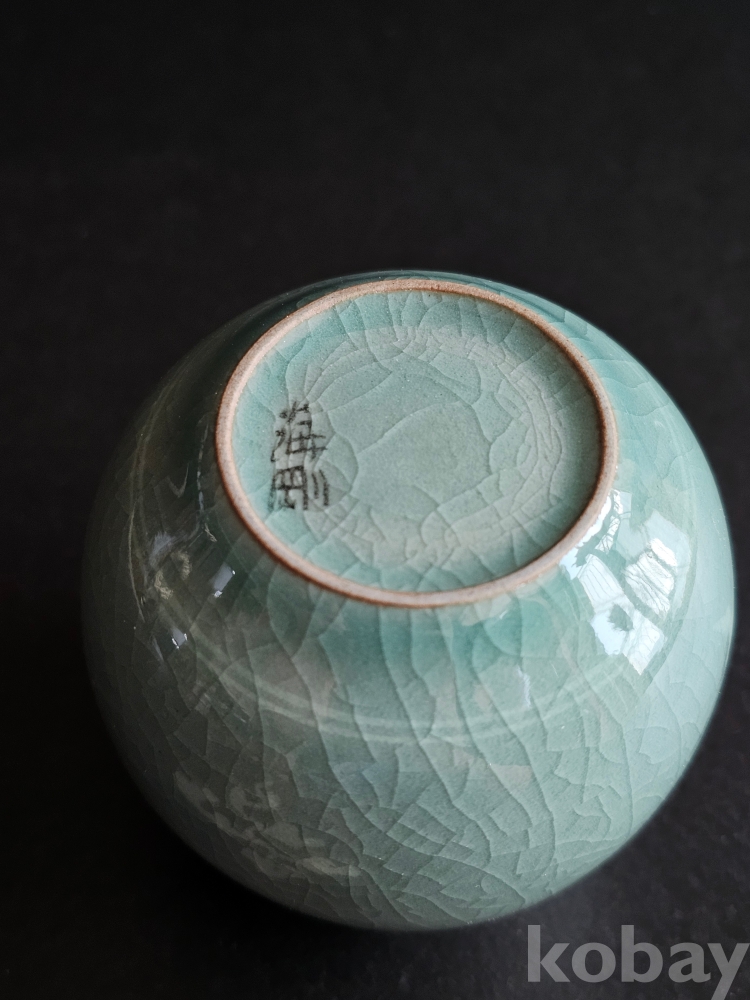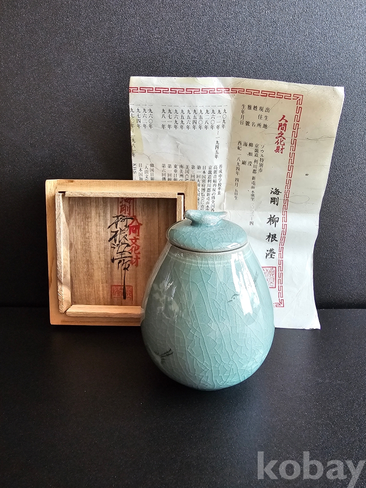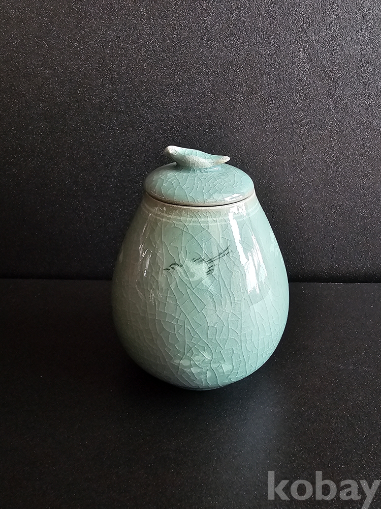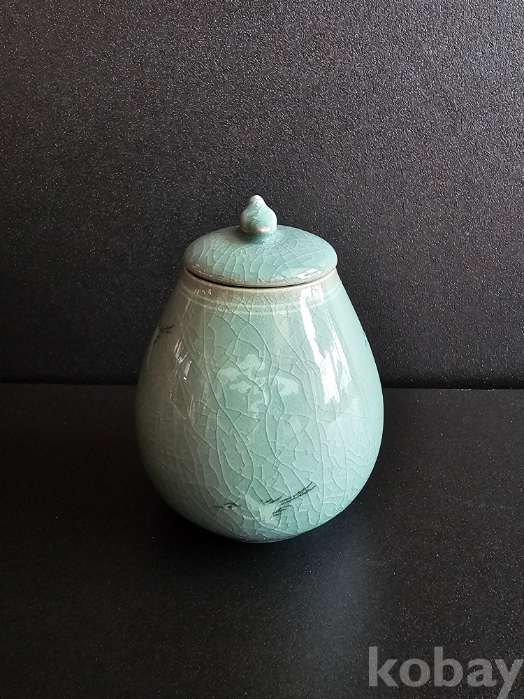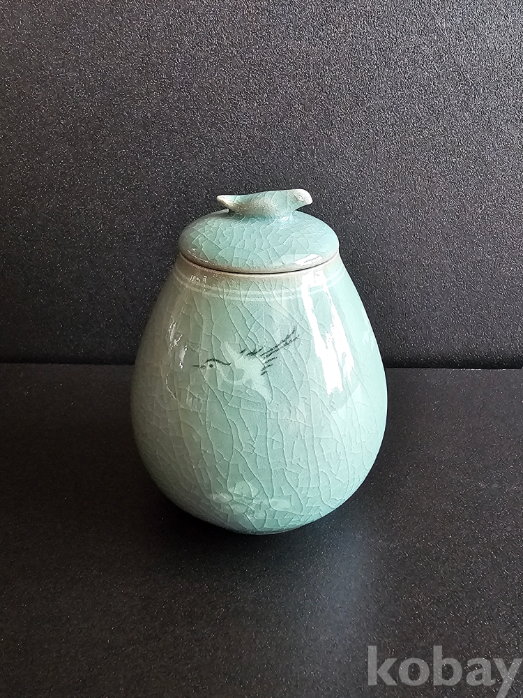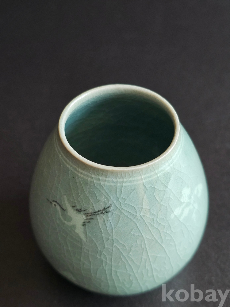 명칭 : 인간문화재 해강 유근형 청자상감운학문차호