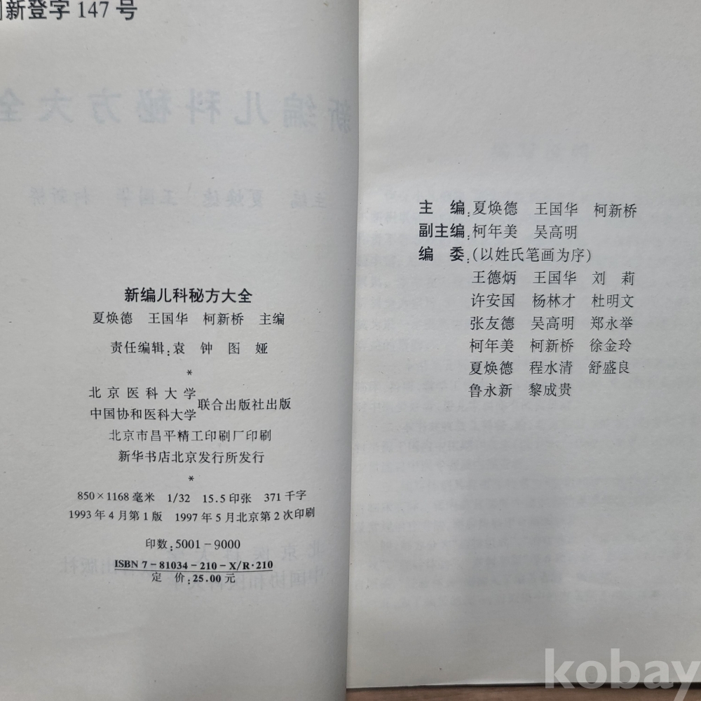 중국어 한의학서적 신편아과비방대체