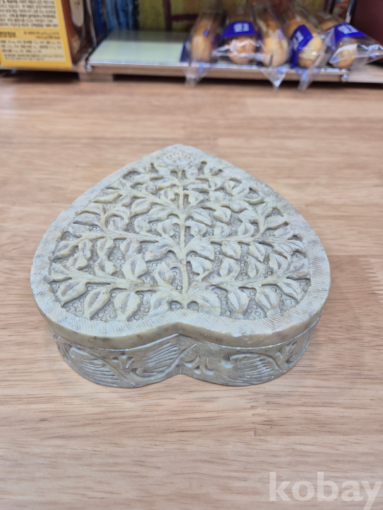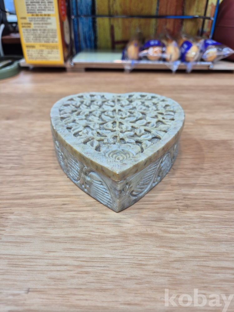 인도산 소프스톤 (Soapstone,활석) 수공예 하트 보석함입니다