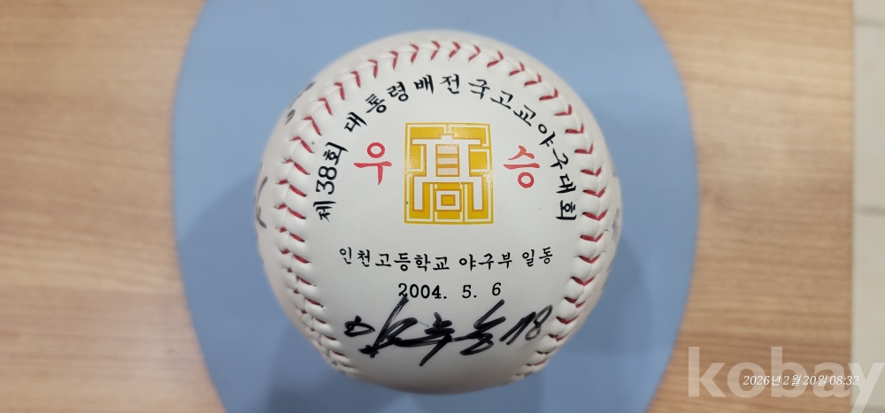 제 34회 대통령배전구코교야구대회 우승기념 볼로 당시 인천고등학교 감독이신 앙후승감독님, 당신상코치와 선수들의 친필 사인이 되어있습니다
