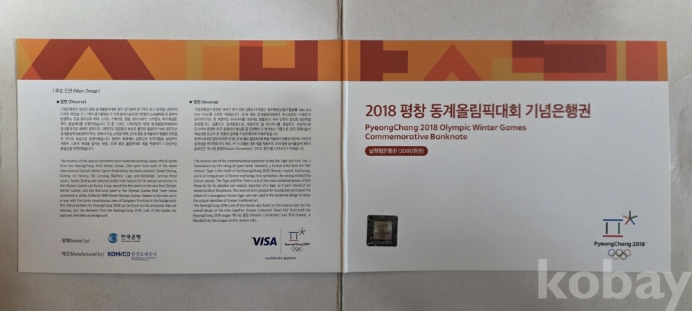 -대한민국 평창동계 올림픽기념 지폐첩 초판 AAA08포인트 입니다.