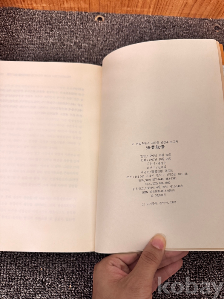 [한국현대사, 회고록] 변정수, <법조 여정 : 전 헌법재판소 재판관 변정수 회고록>, 관악사, 1997, p. 461, 상태 중하급(필기있음, 사진참조)