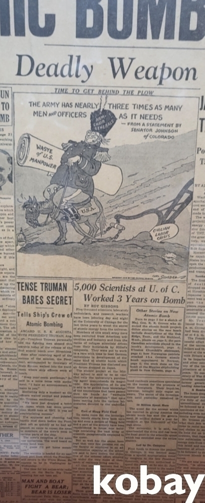 1945년 2차 세계대전 일본 핵 폭탄 투하 (제2연대) 영자 (英字)신문 기사 원본입니다,