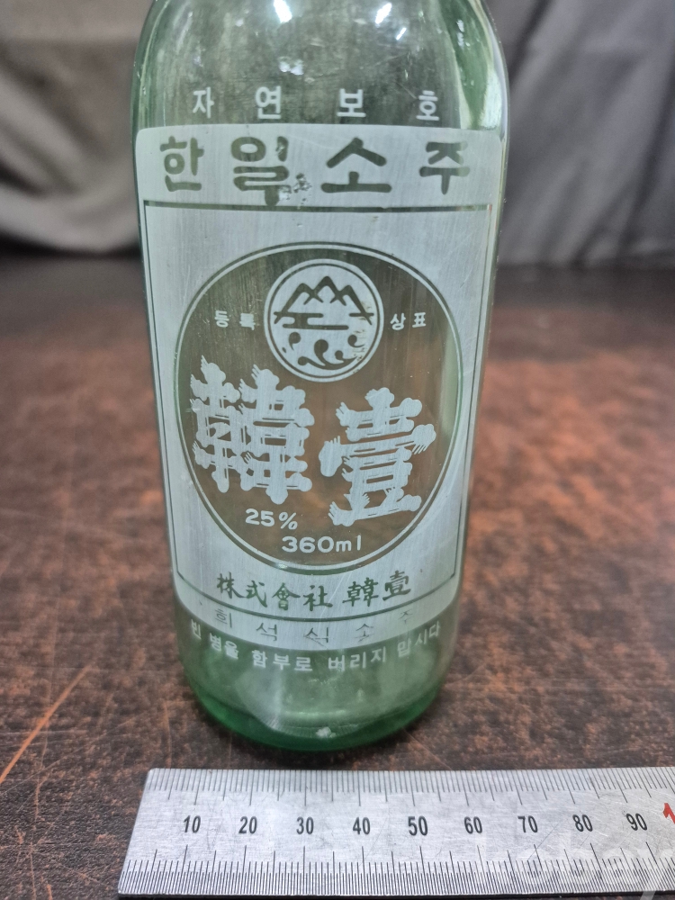 1970-80년대 경월 종이 마크 소주병 한일 소주 프린팅 소주병