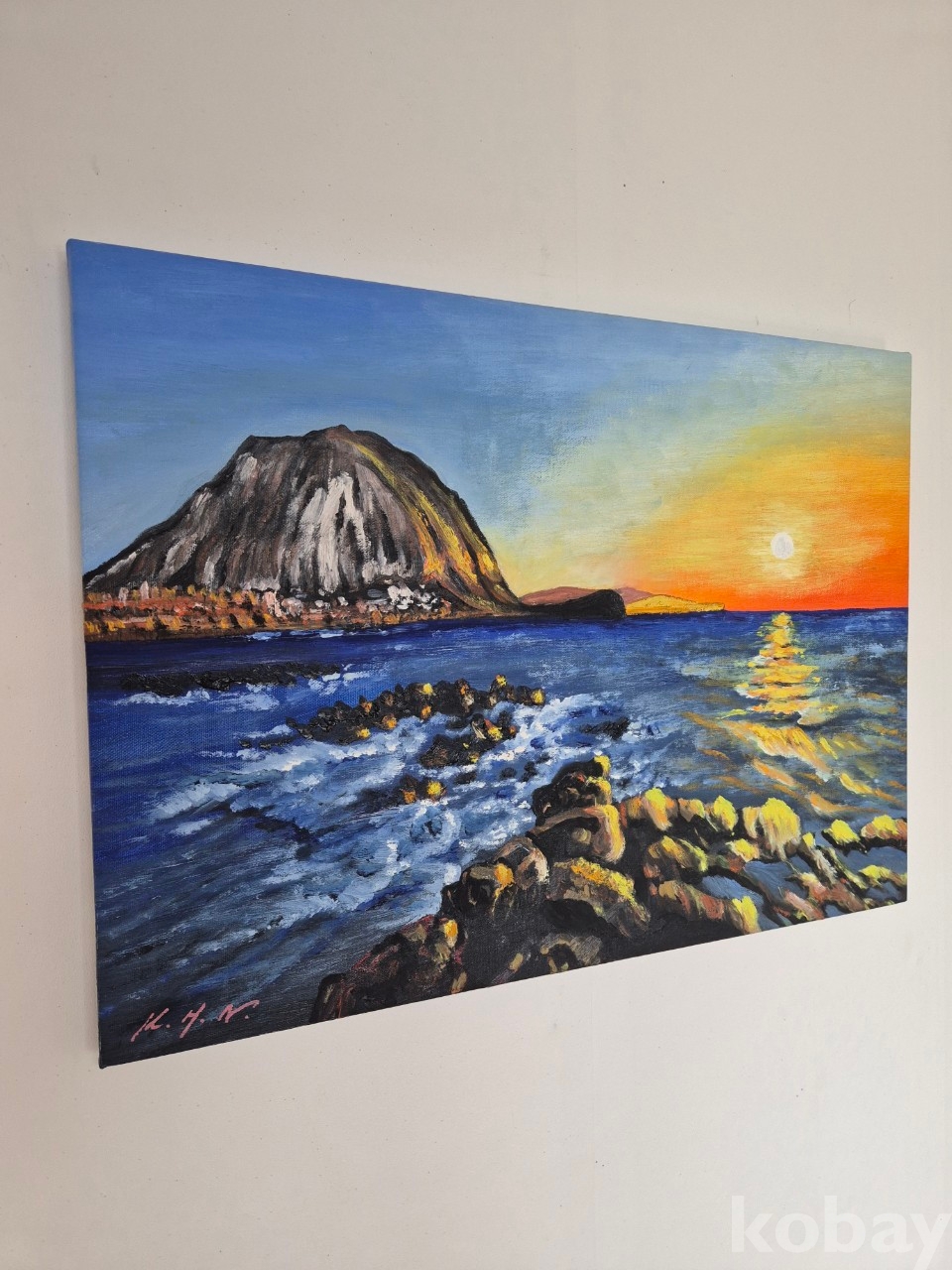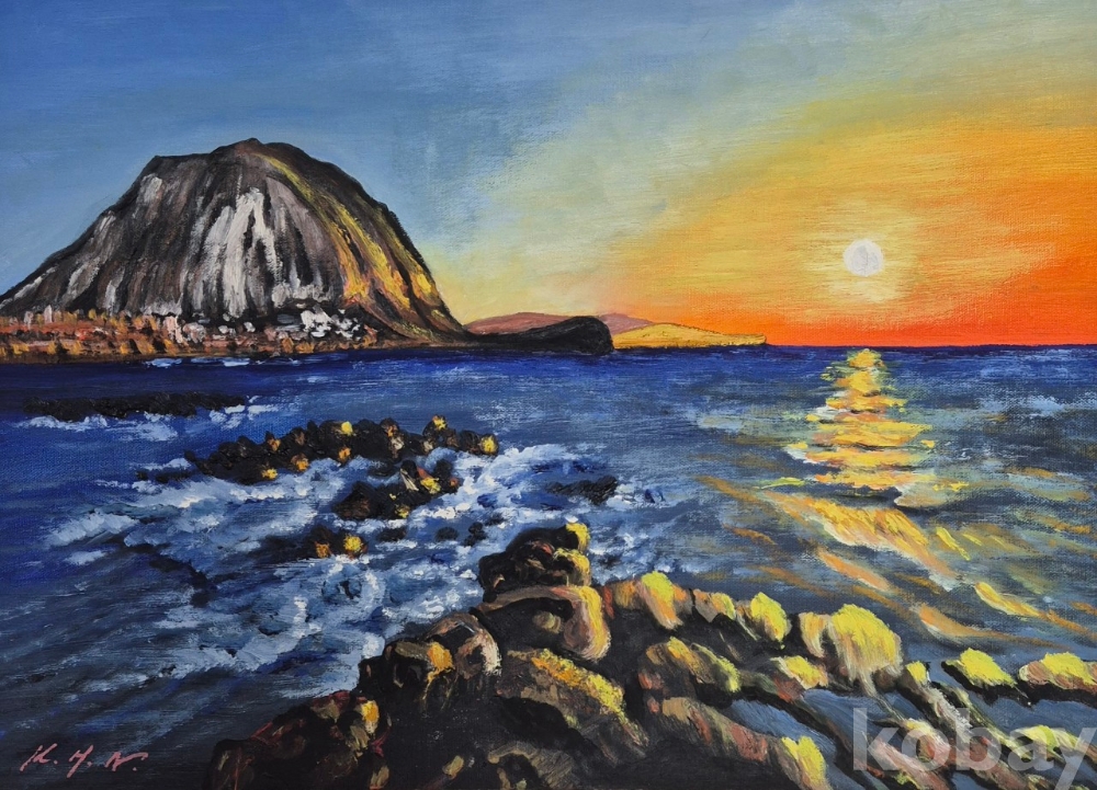 김한나 작가의 제주 산방산일출을 표현한 작품입니다.