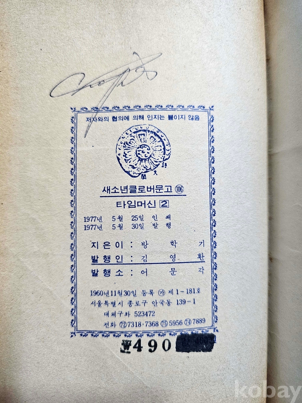 물 품 명 | 타임머신 2편 / 방학기 만화 / 1977년 / 어문각 |