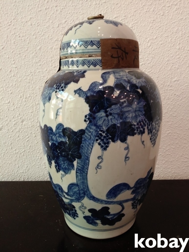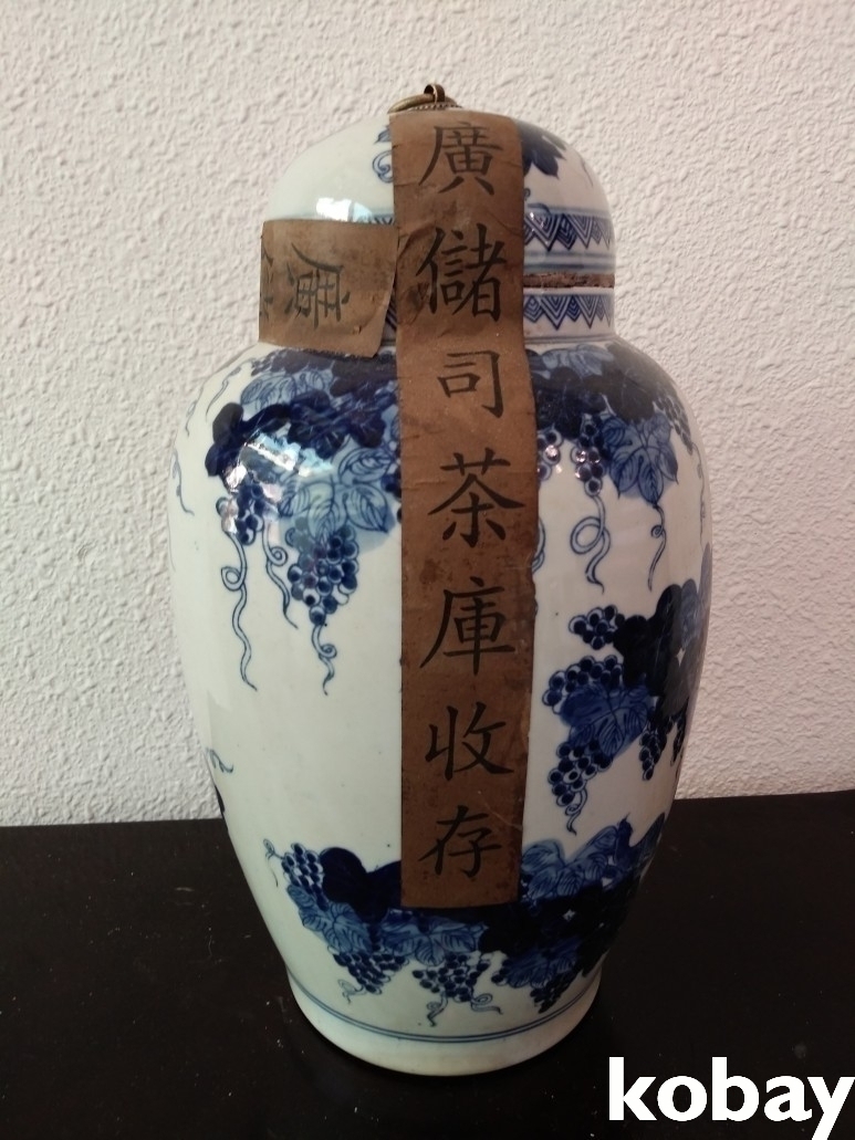 포도문양이 있는 보이차 도자기 입니다.