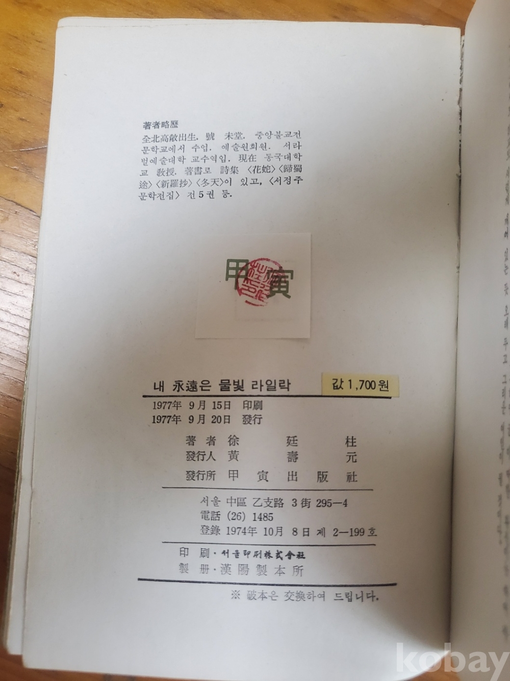 1. 내 영혼은 물빛 라일락, 서정주, 갑인출판사, 1977년, 324쪽, 상태 상, 사진 참조