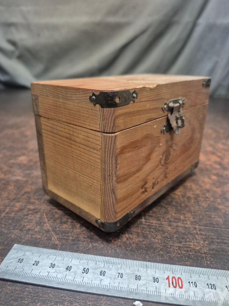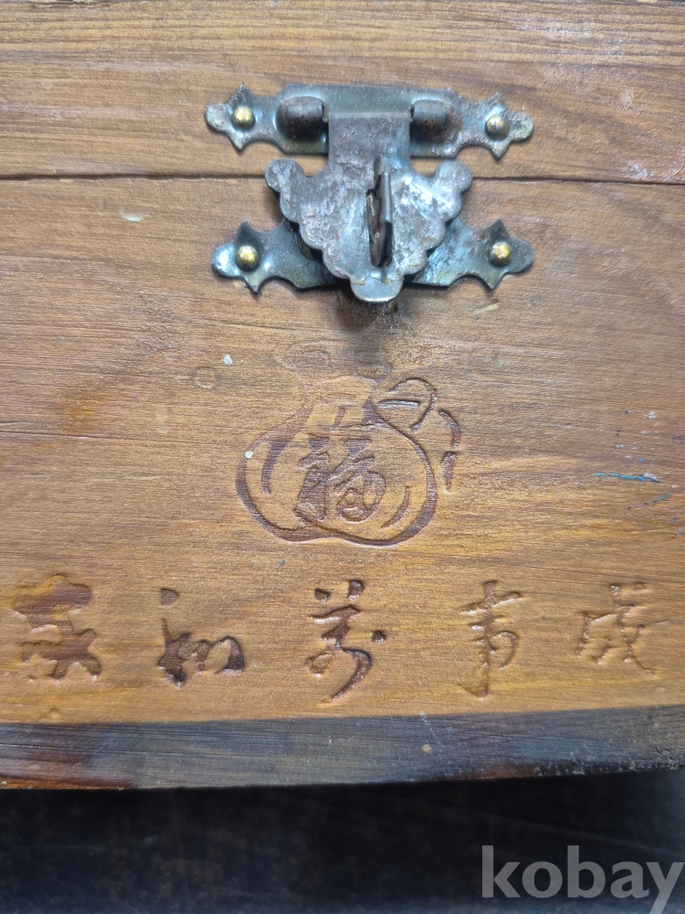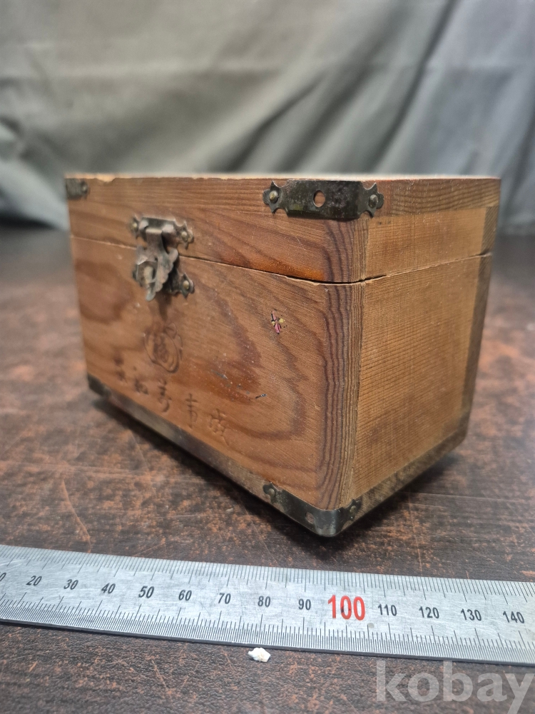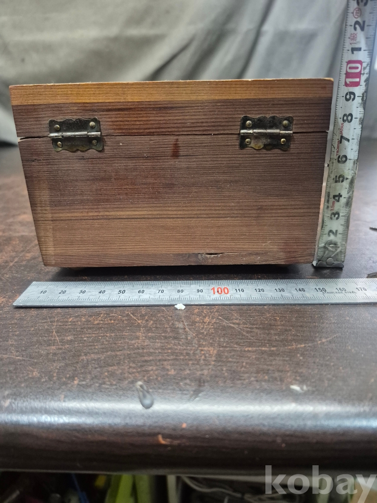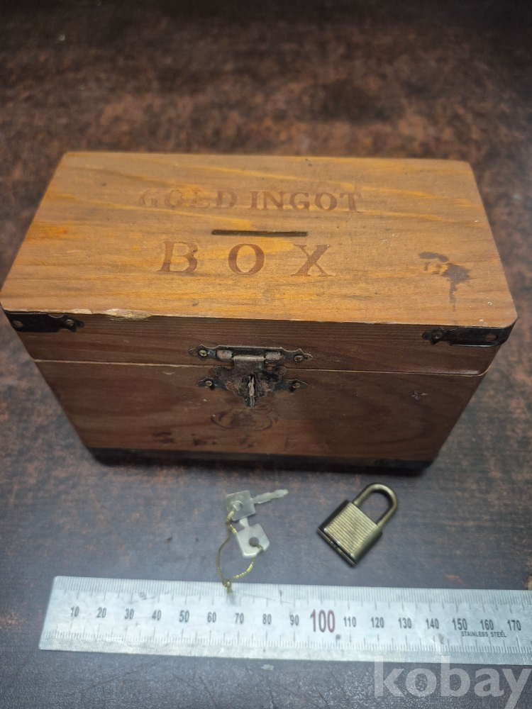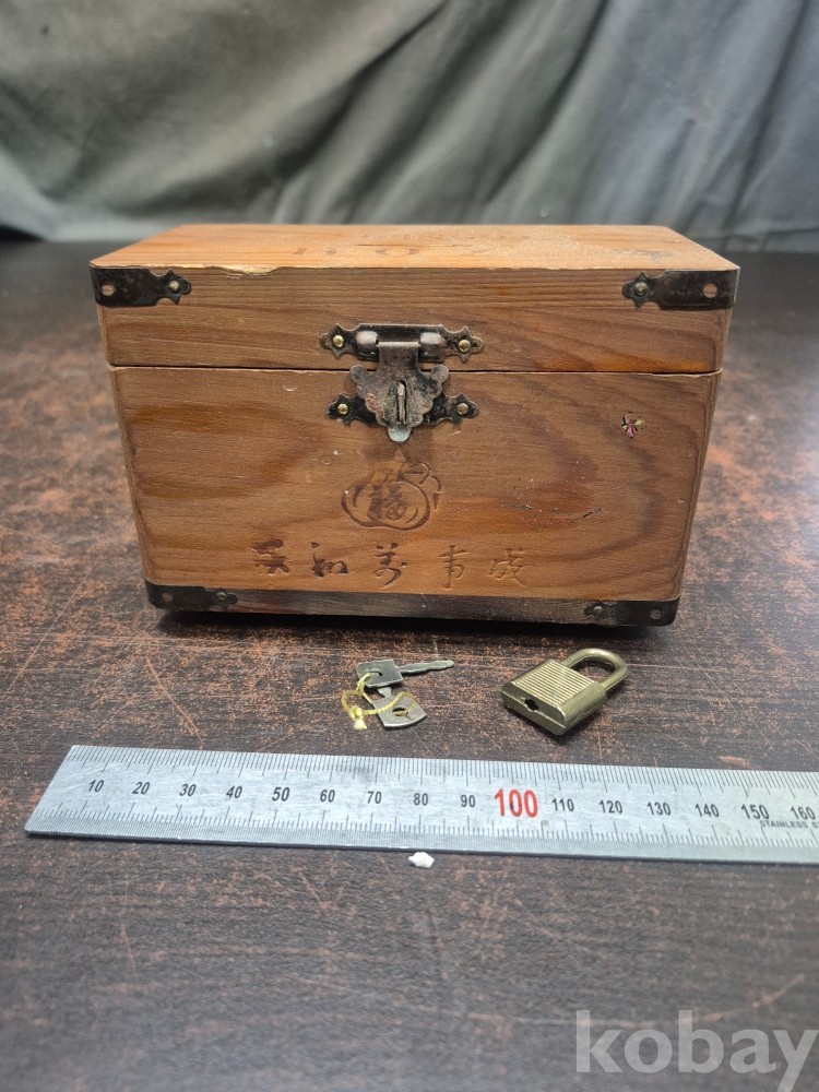 1970-80년대 원목으로만든 소형 원목저금통과 열쇠와 열쇠 뭉치 14.5*7.5*10