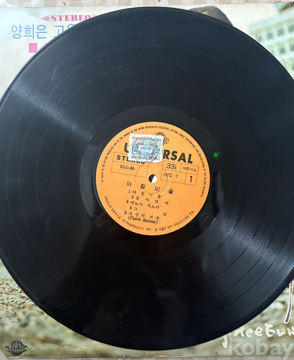★★(가요음반 -희귀 초반LP) '양희은 고운노래모음' 아침이슬 -유니버어살레코오드사 1972년