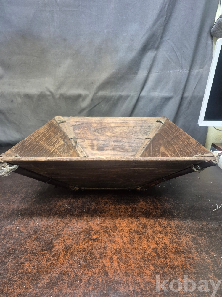 오동나무와 대나무로 만든 철사로 역어 만든 오동나무 함지 47*49*16