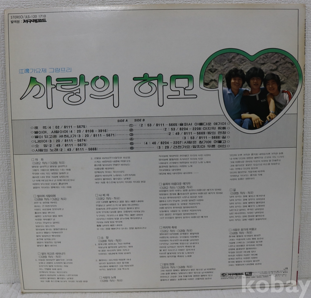 가사지가 없는데 있다고 표기된것은 뒷면에 가사인쇄가 있어서 입니다.