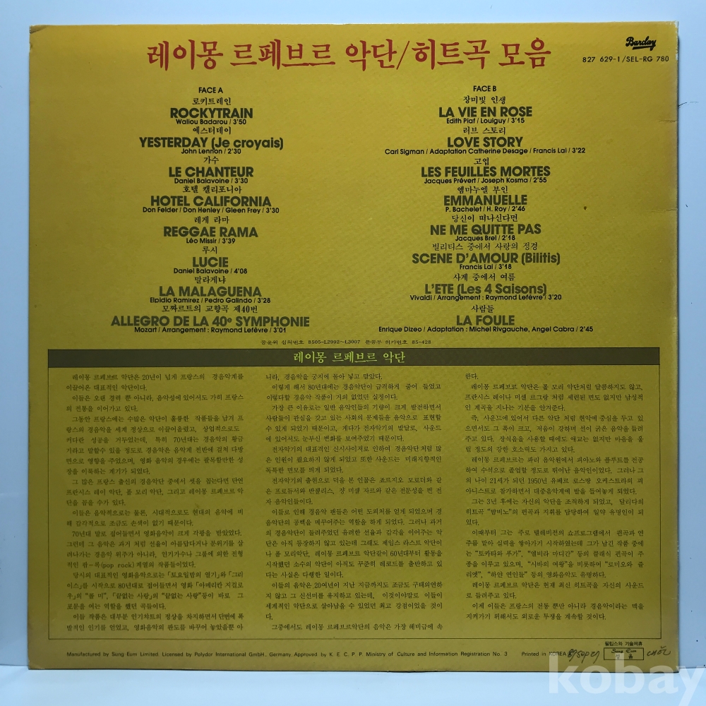 LP 83,820-22 Raymond Lefevre - 16 Grands Succes _ 자켓 EX+ 알판 EX+ 85 년 국내반