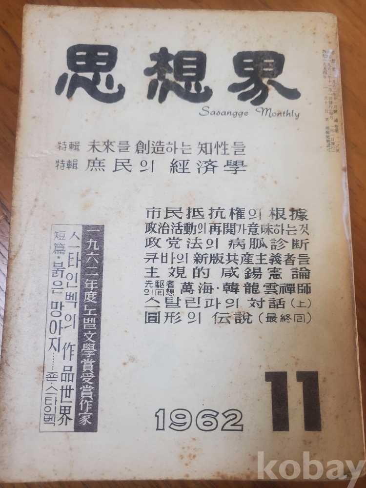 1. 사상계 통권 113호, 사상계사, 1962년, 374쪽, 상태 상, 사진 참조