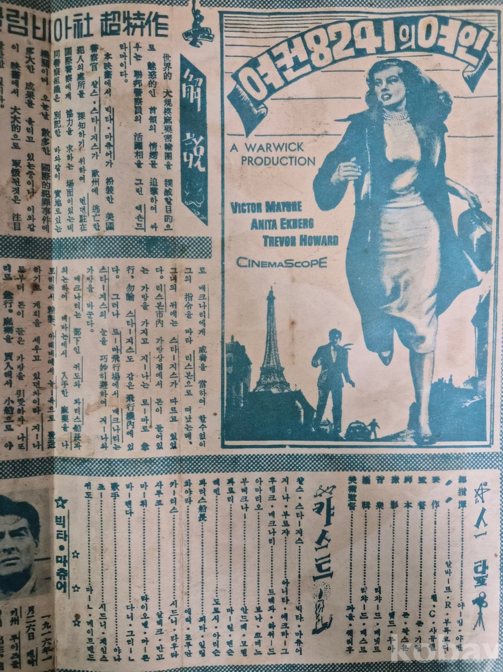 [희귀 근대사 자료] / (영화포스터/영화카드/리플렛/광고카드 등) 1957년 / 여권 8241의 여인(빅타 마츄아 아니타 에크버그)
