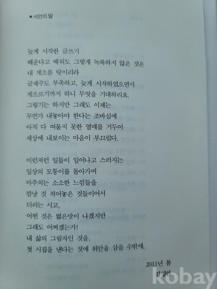 일상적인 삶에서 마주치는 소소한 느낌을 언어로 승화.
