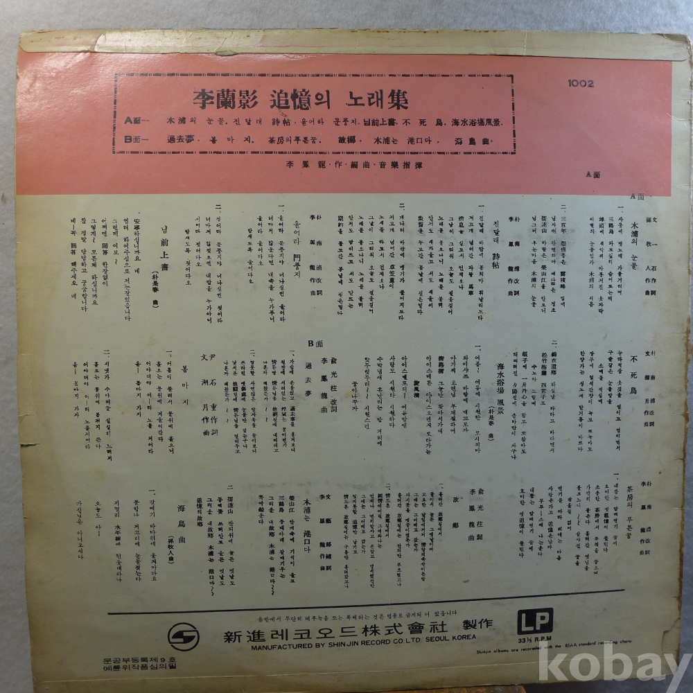 (귀한)LP음반: 이난영의 "목포의 눈물","봄마지","해조곡"등 수록앨범