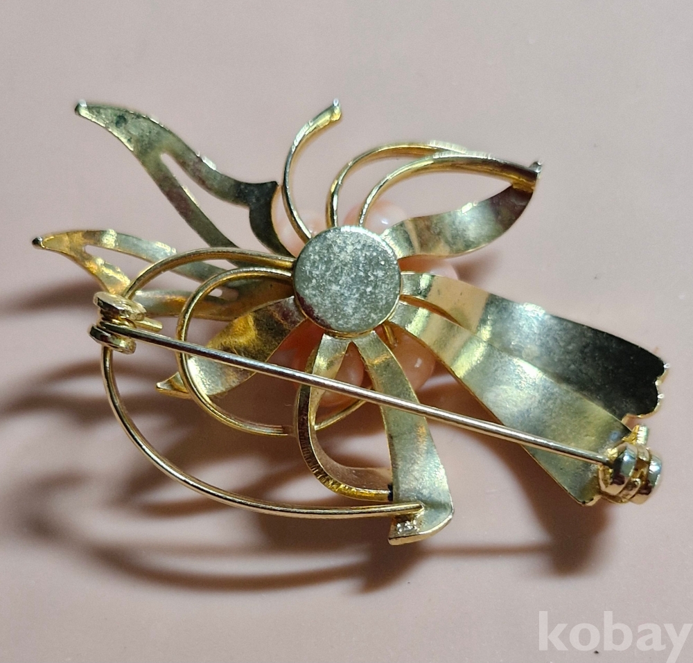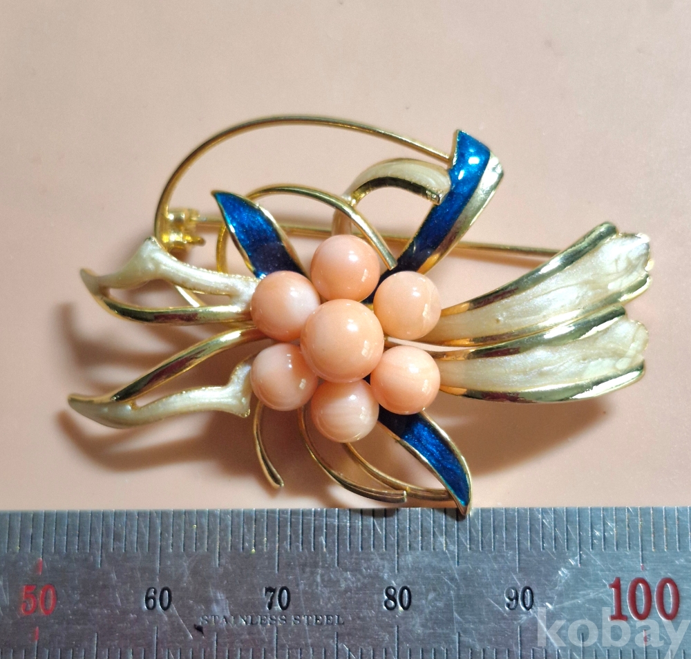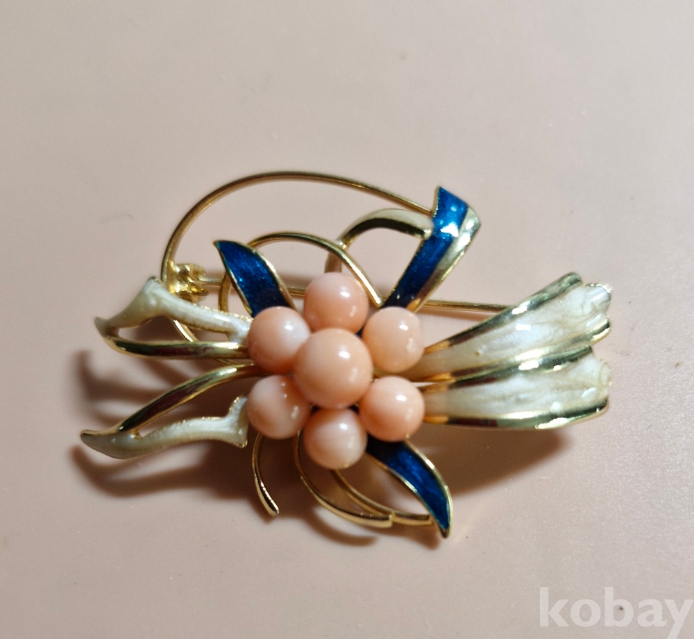분홍색 천연산호와 칠보로 만든 예쁜 브로치입니다.