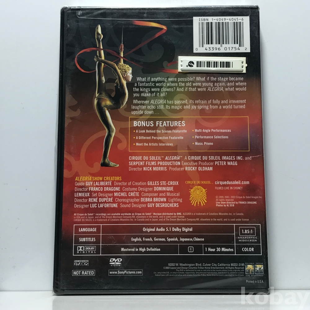 미개봉 DVD 40,100-22 태양의 서커스 - 알레그리아 (Alegria) . 자켓 : 실사 디스크 컨디션 : 개봉 깨끗