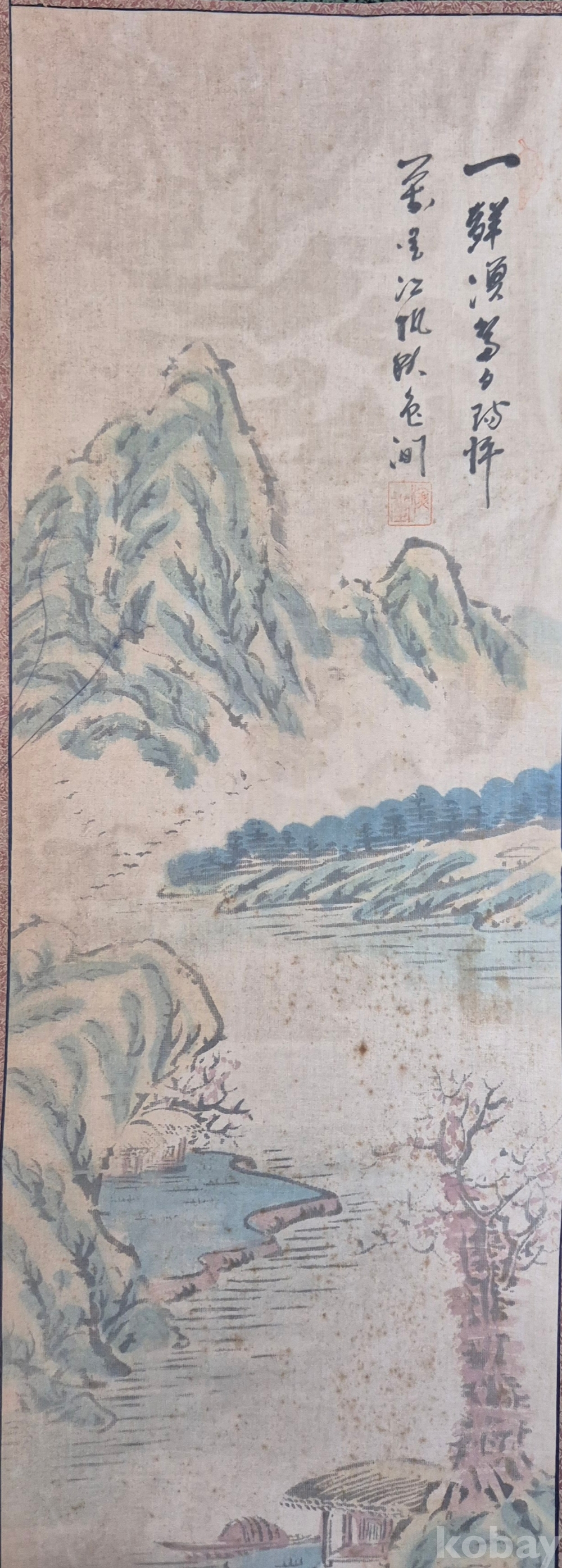 오래된 범상치 않은 필력의 고 산수화로 상당한 수준의 화가분 작품 추정되오니 작품 이미지상 수결 및 낙관ㄴ'등