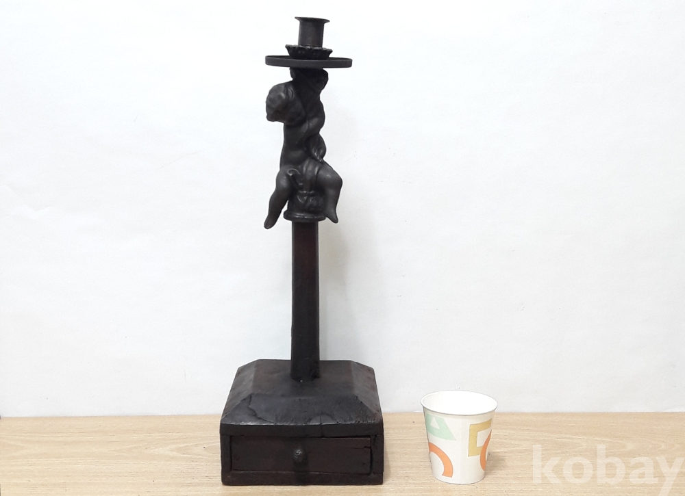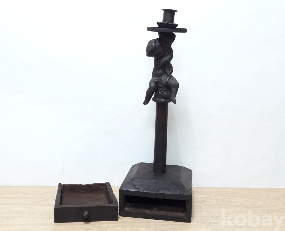 동으로된 아기 천사 장식 서랍 달린 촛대(무쇠와 목제)
