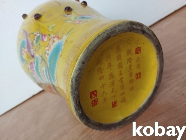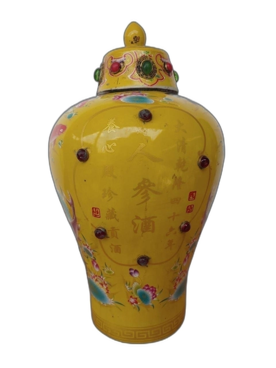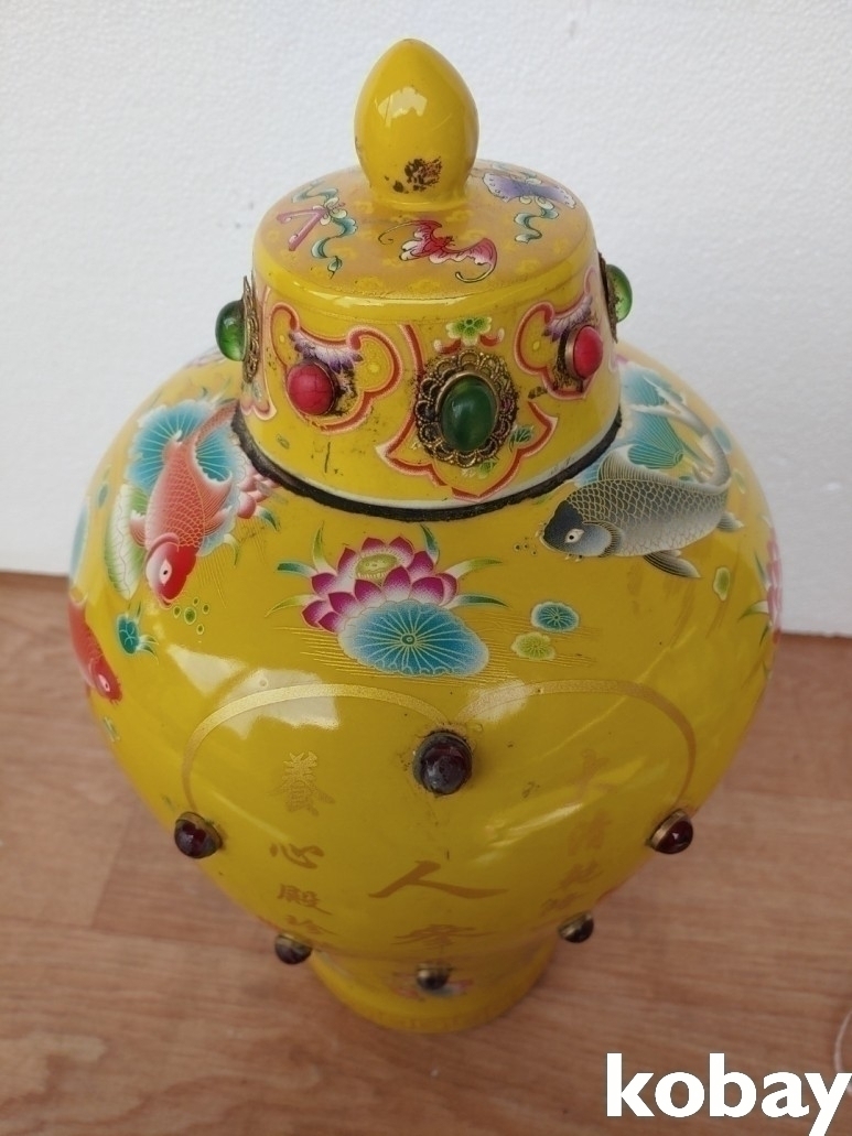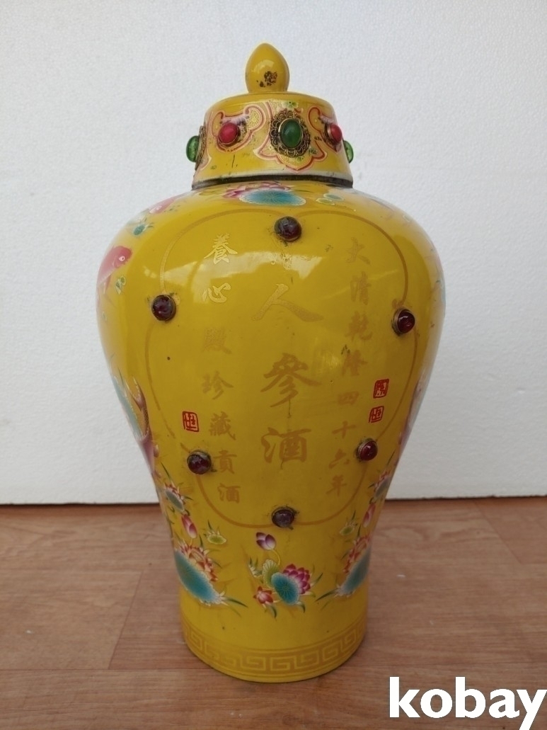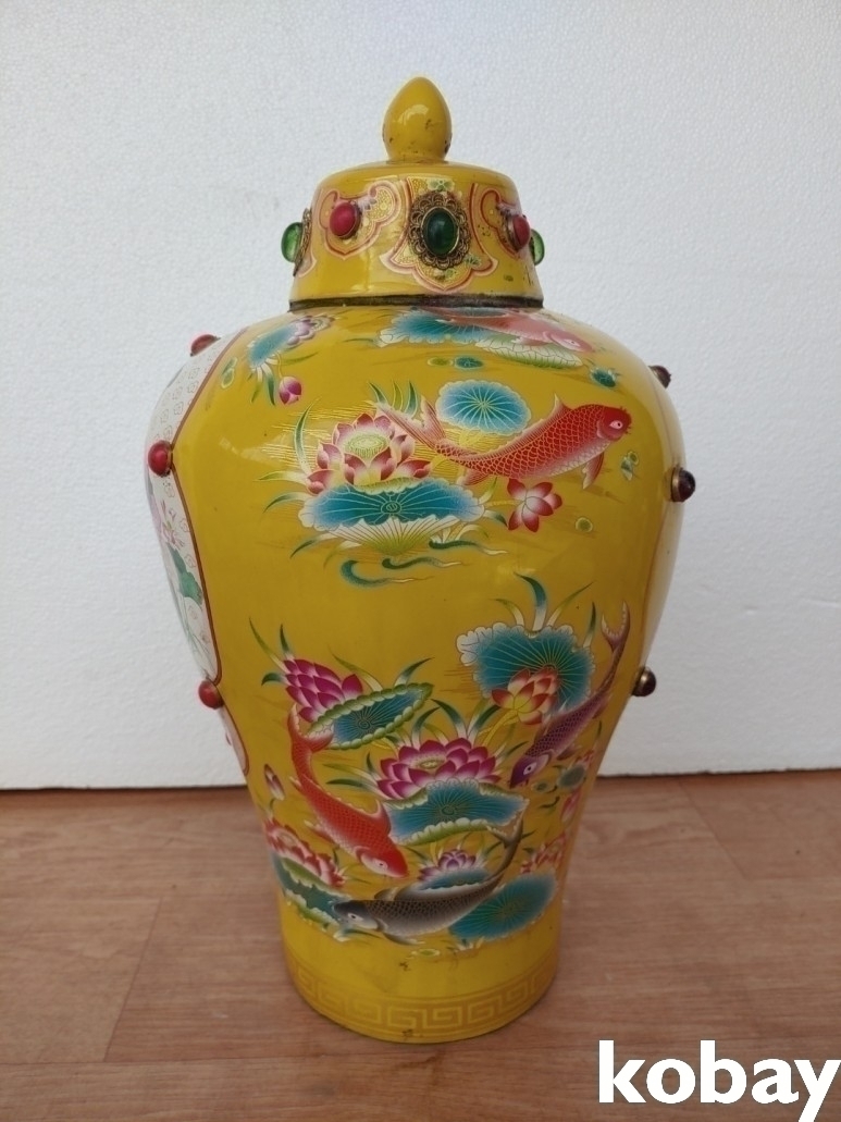 화려한 색감의 선녀와 물고기 도안 인삼주 도자기 입니다.