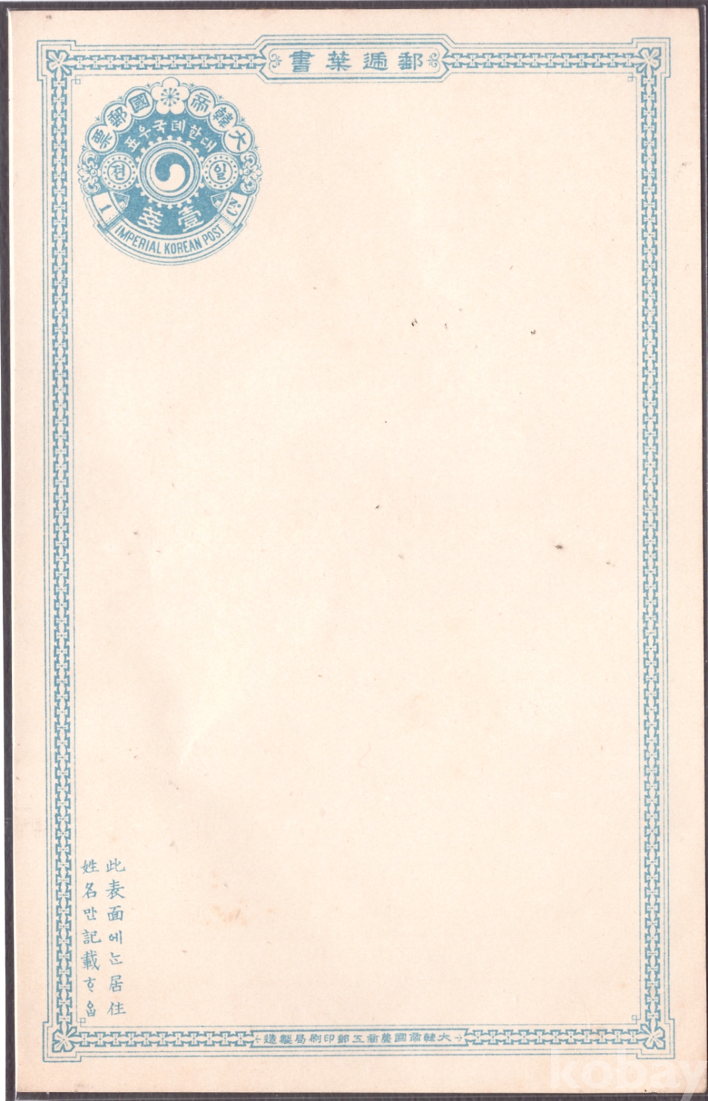 대한제국 엽서 #1. 1전권. 농상공부 발행(未사용)