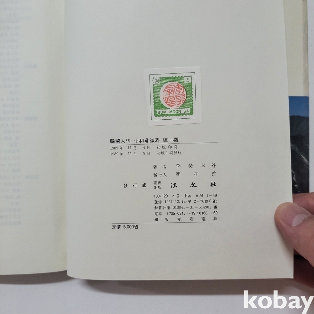 [천원경매] 1989년 법문사 발행 한국인의 통일 인식관련