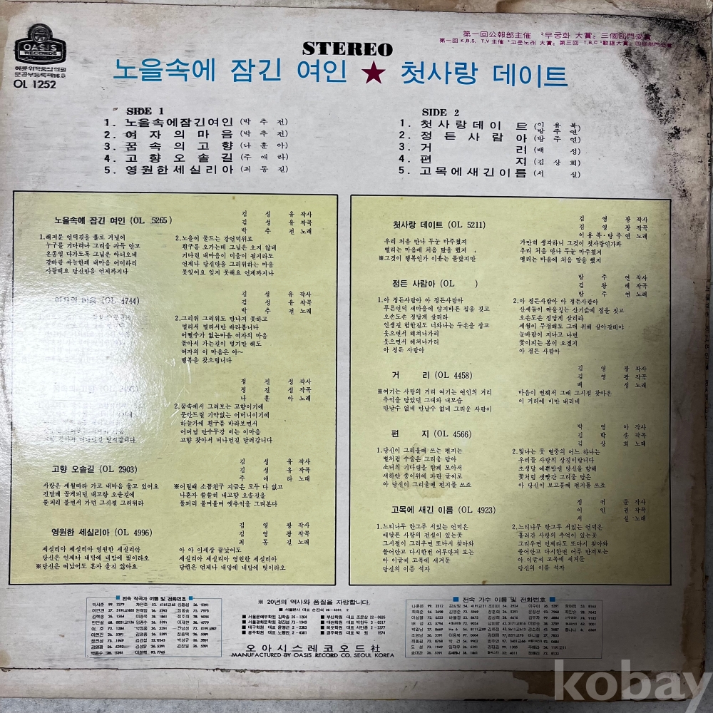 • 희소성: 당시 발매량이 많지 않았던 박추전의 곡이 수록되어 있어 수집가분들께 소장 가치가 높은 음반입니다.