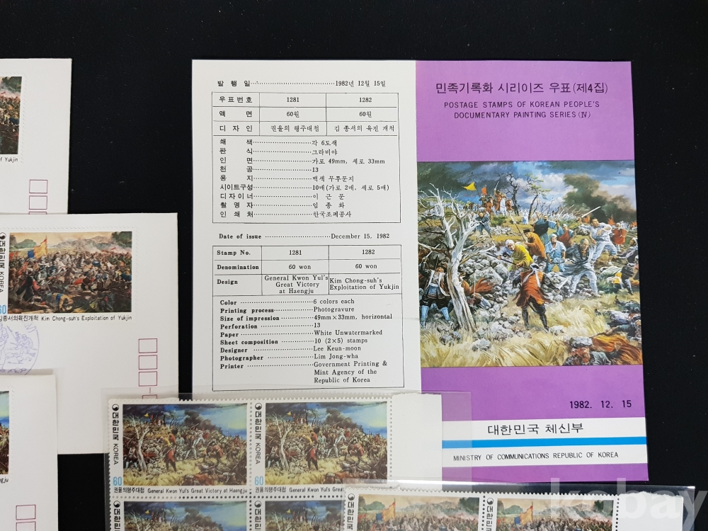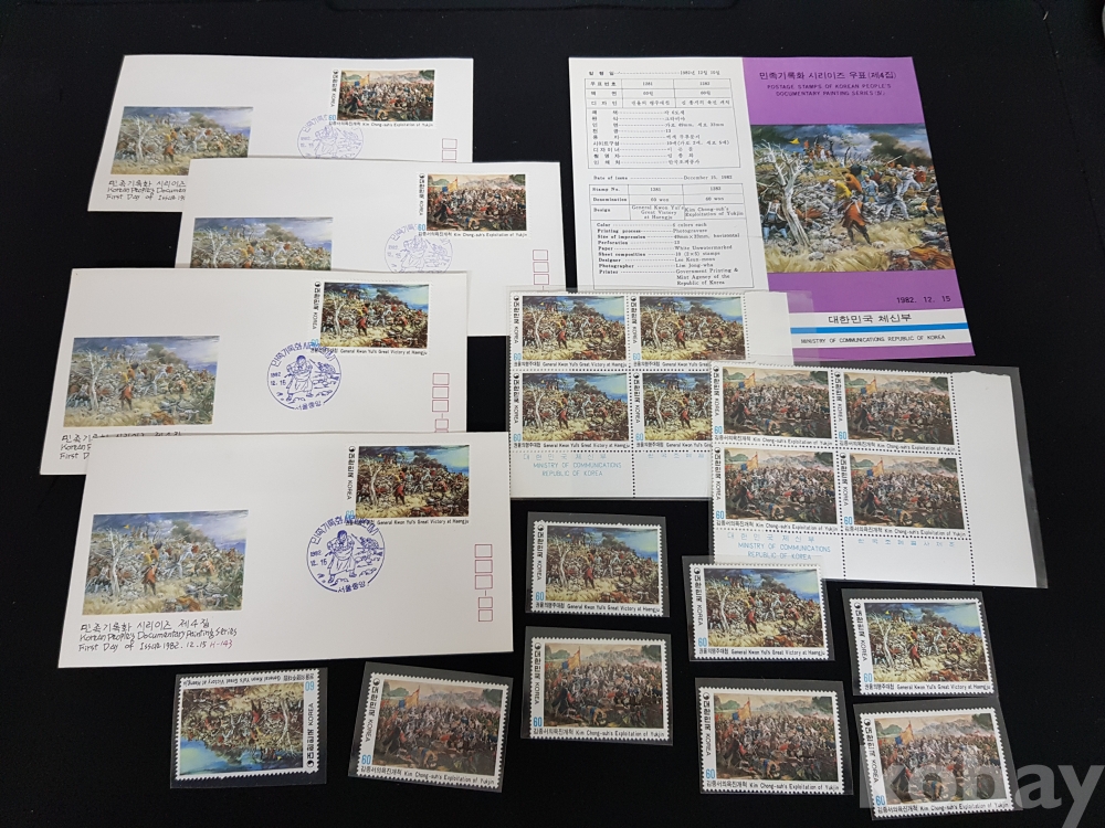- 1982년 민족기록화 시리즈 제 4집 안내카드, 초일봉피, 명판 등 모음