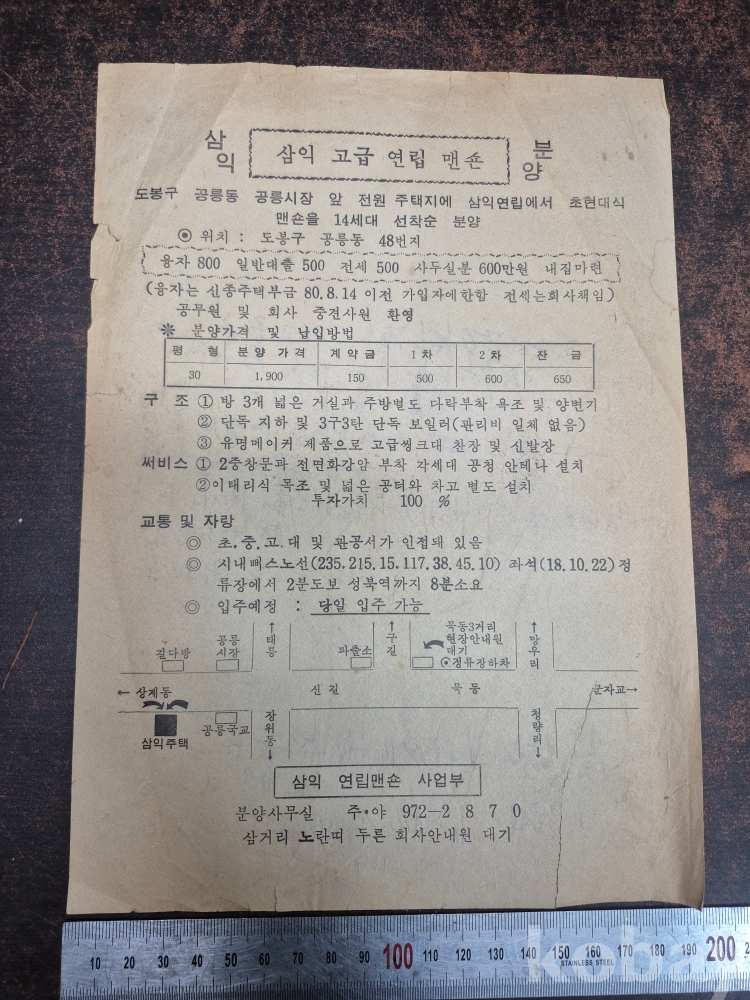 1980년대 도봉구 공릉동 48번지 삼익 고급 연립 맨손 분양 광고지 전단지 찌라시