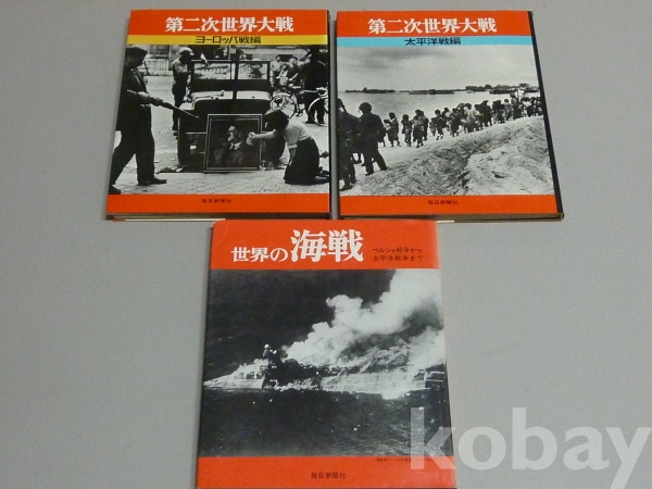 2차대전을 유럽편과 태평양편으로 구분 그리고 세계의 해전을 보여주는 세 권의 사진집. 상태양호