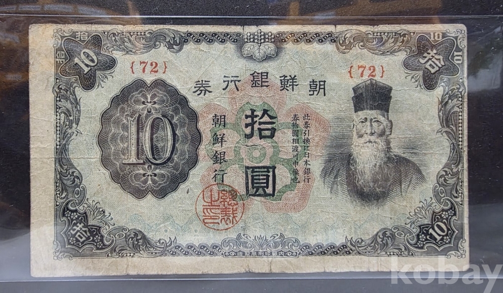 -대한민국 조선은행권 갑 10원 무번호 사용제 지폐이고 완벽하지 않습니다. 부족하니 참조해주세요..