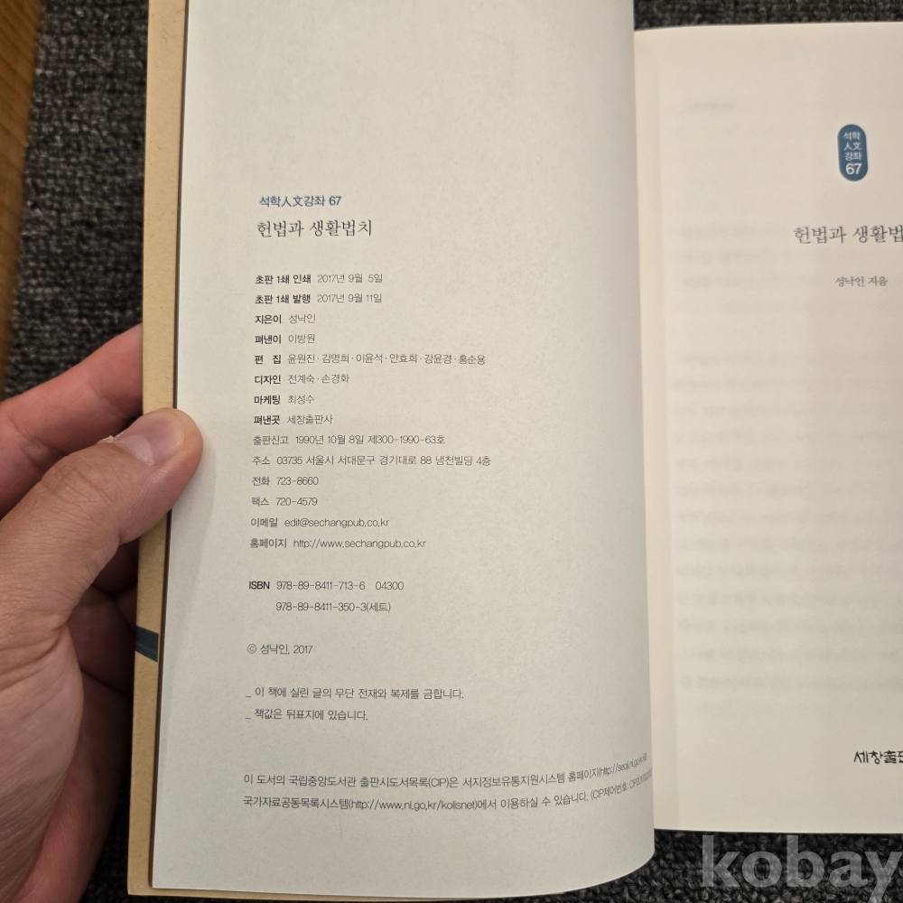 [한국현대사, 헌법, 법치] 성낙인, <헌법과 생활법치>, 세창출판사, 2017, p. 408, 상태 중상급(사진참조)