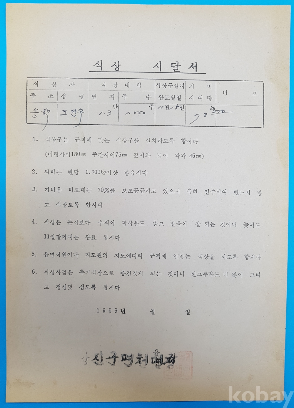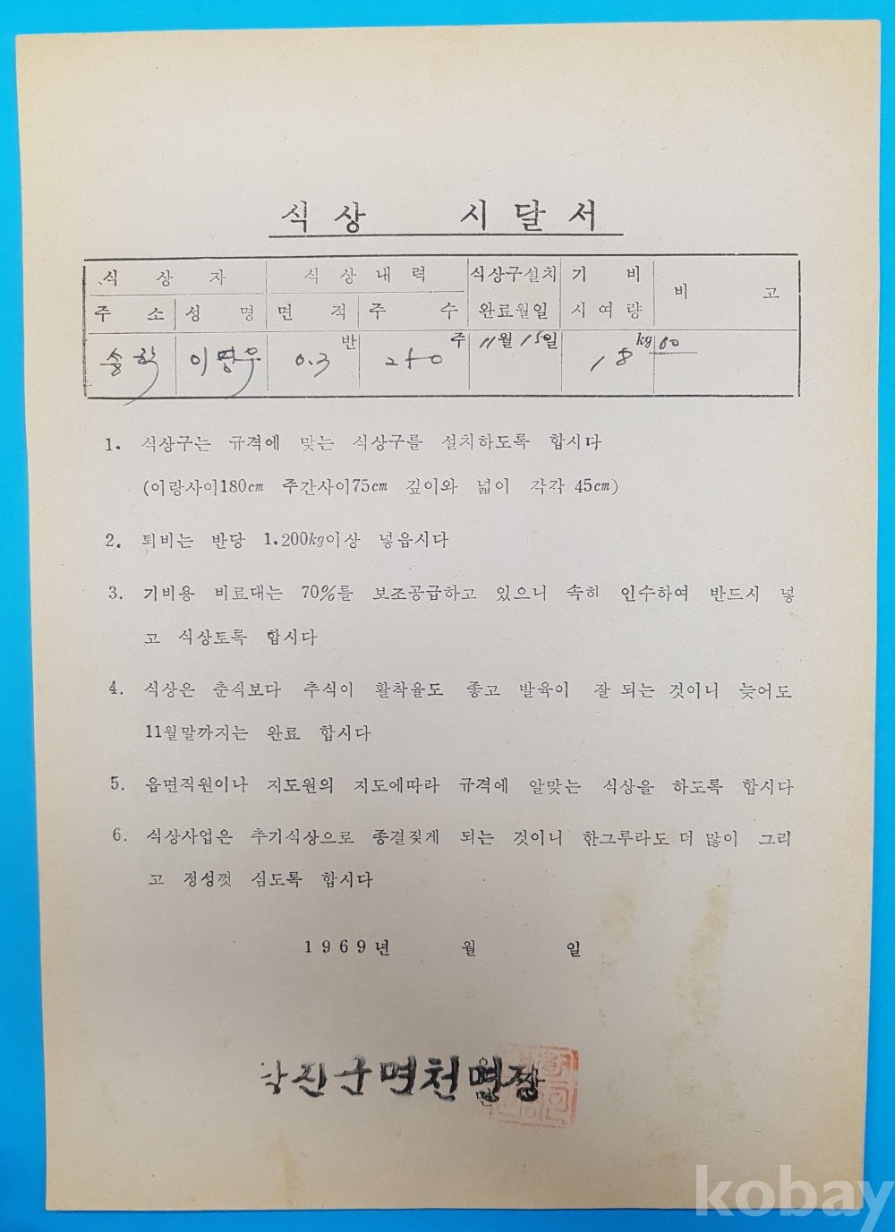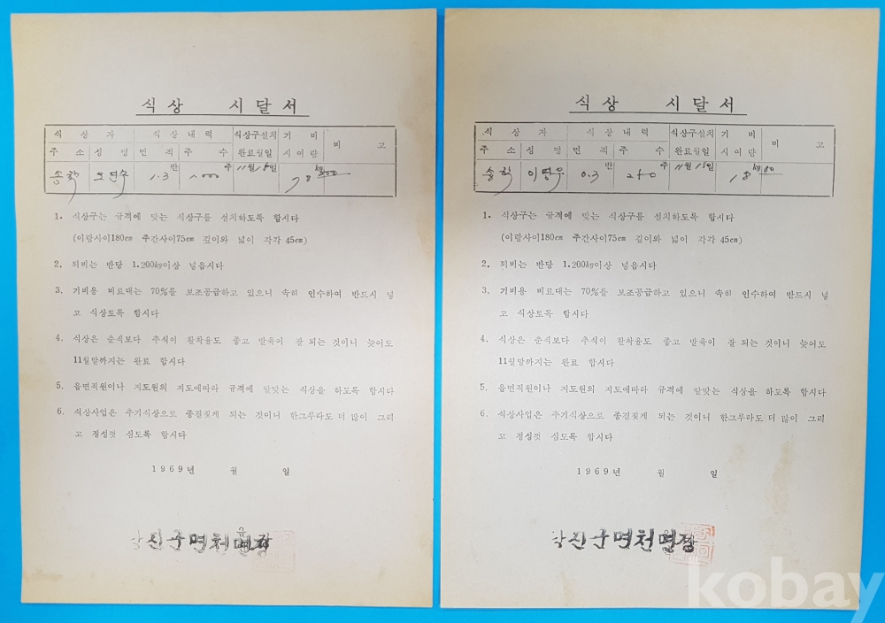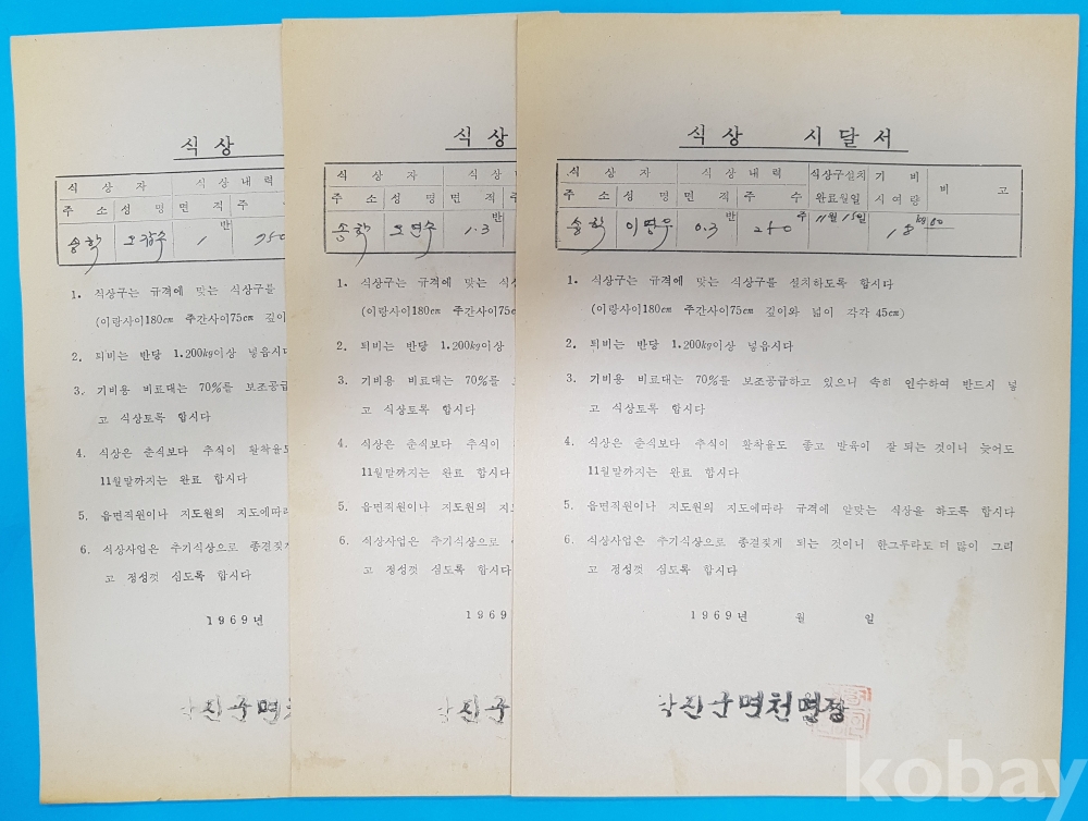 1969년 당진군 면천면 [식상 시달서] 3부*송학리 오갑수,오연수,이명우 3인
