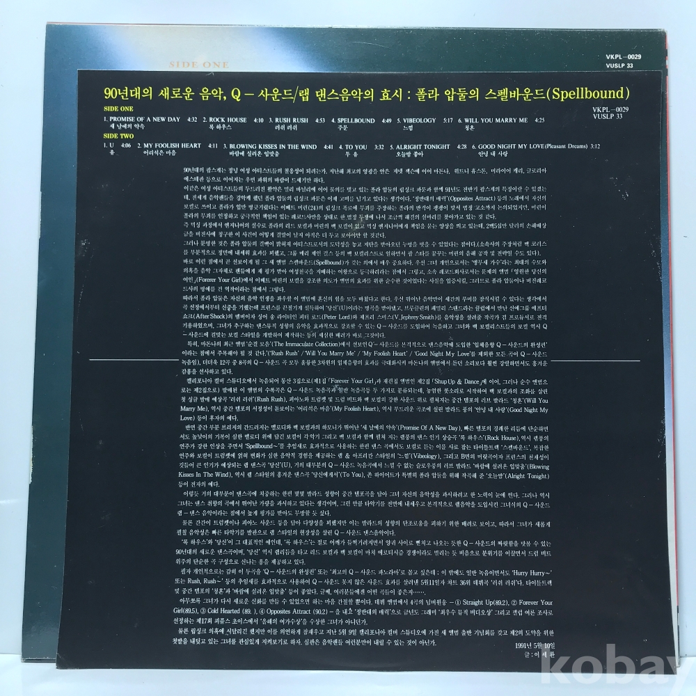 LP 85,100-19 Paula Abdul - Spellbound 자켓 EX+ 알판 EX+ 91 년 국내반