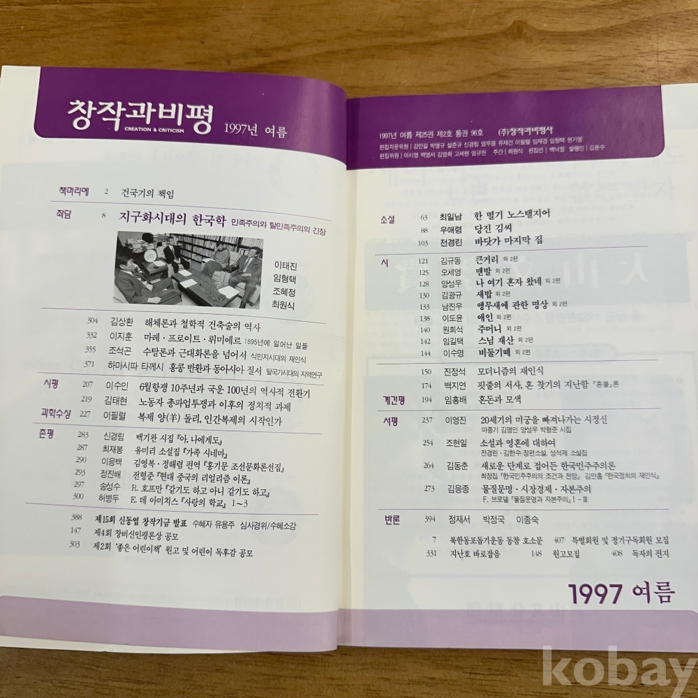 [한국현대사, 수탈론과 근대화론, 6월항쟁, 홍콩반환] 창작과비평사, <창작과 비평 96 : 1997 여름 >, 창작과비평사, p. 412, 상태 중하급(사진참조)