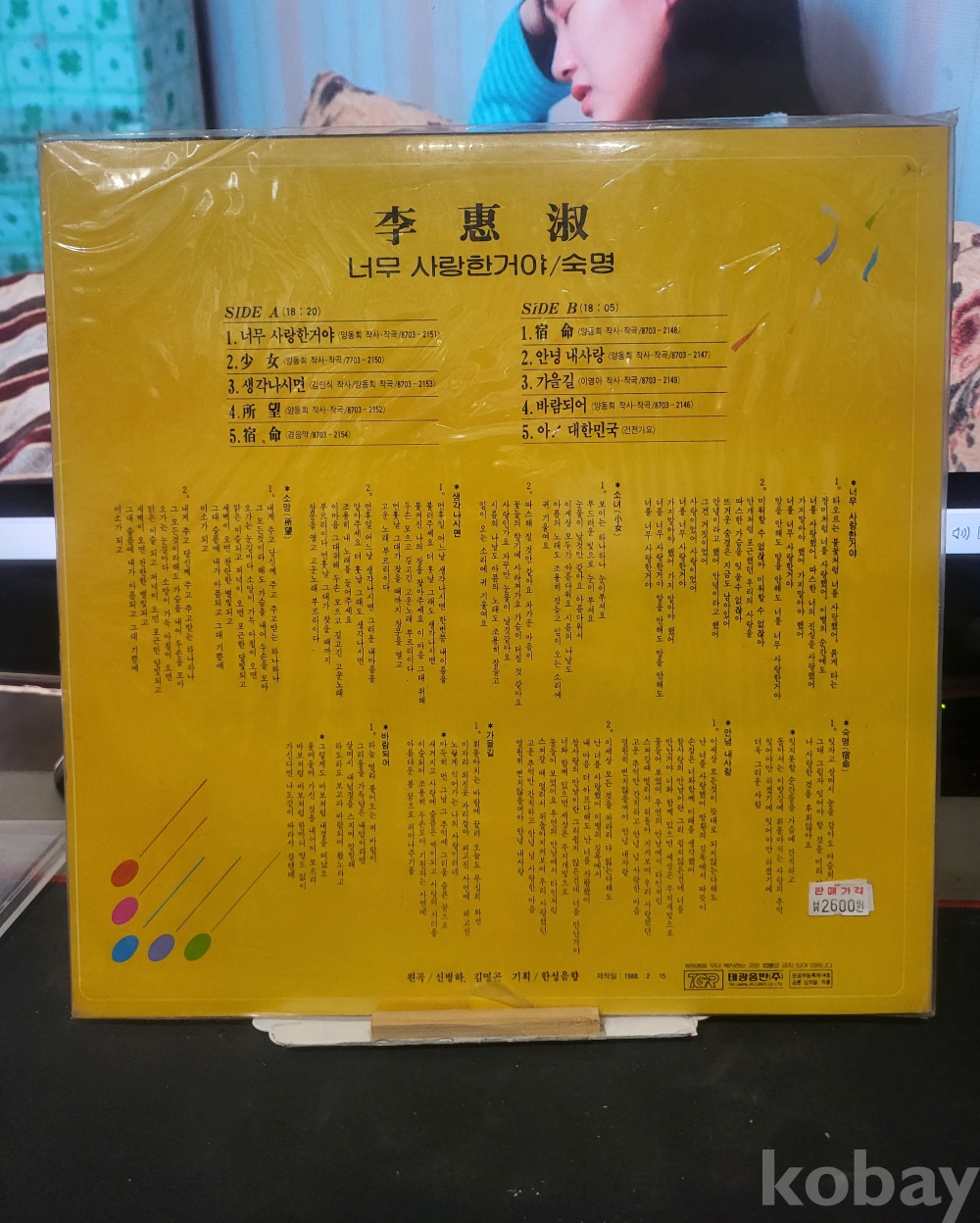미개봉 희귀 초판 LP판 ----- 이혜숙 ( 너무 사랑한거야 ~~~~~~