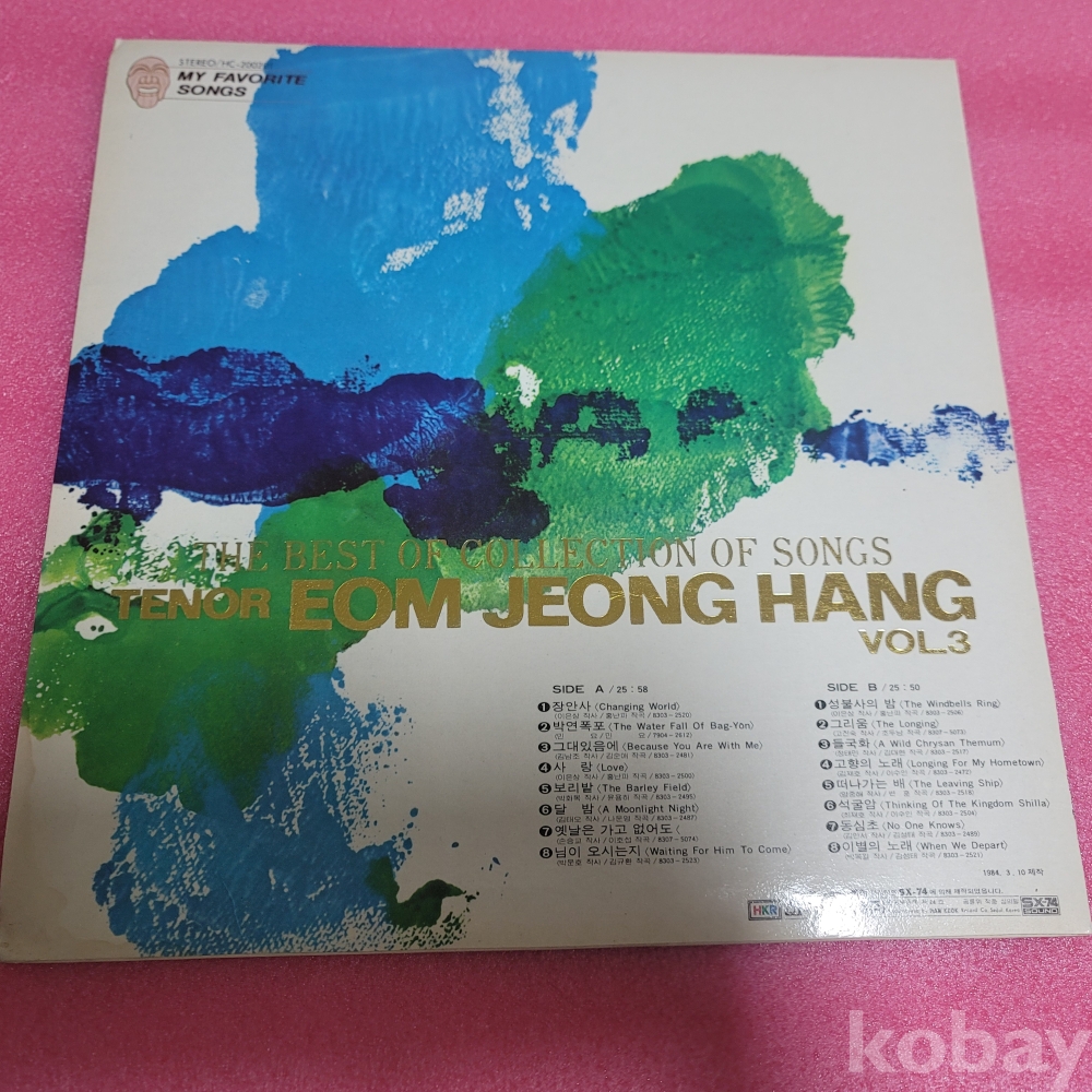 테너 엄정행 애창곡집 가곡집 제3집 /장안사.성불사의밤.박연폭포 .그리움