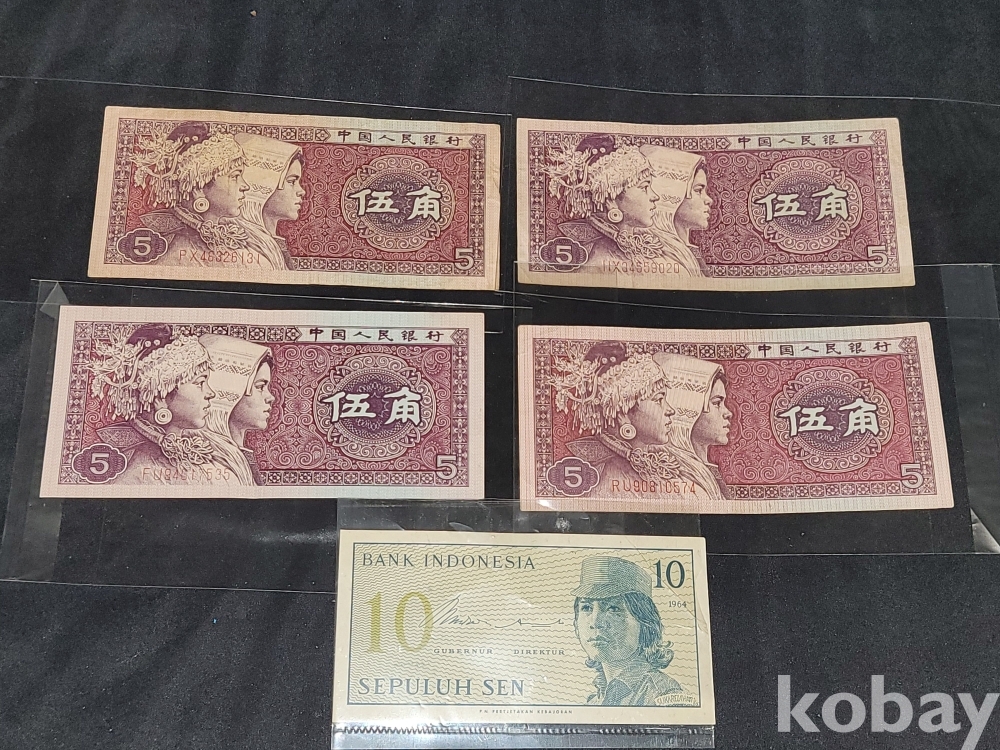 빈티지 중국 위안 등 각종 외국 구권 지폐 화폐 10장 일괄입니다.