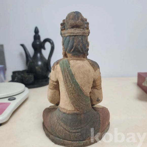 오래된 연식을 자랑하는 통나무 목불상 입니다. 나무 조각에 당채로 색을 더했습니다. 곳곳이 색이 바랬지만 세월에 비해 대체적으로 형태나 색감은 좋습니다. 사이즈도 좋고 분위기 넘치는 귀한 기물 소개합니다