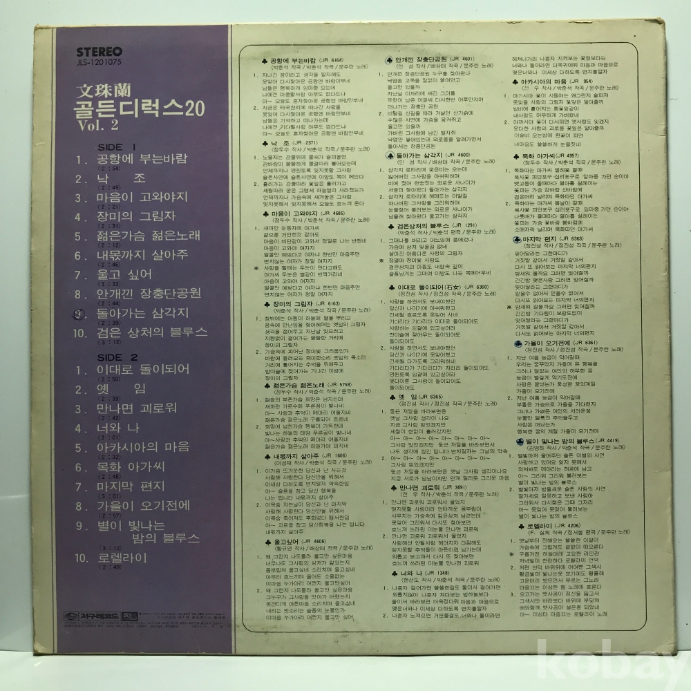LP 7,000-1 문주란 - 골든디럭스 20 (Vol.2) . 자켓 EX 알판 EX 77 년 국내반