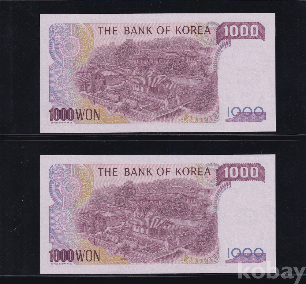 - 1983년 2차 천원 양성권 01포인트 2연번 미사용 지폐 - 2장 일괄