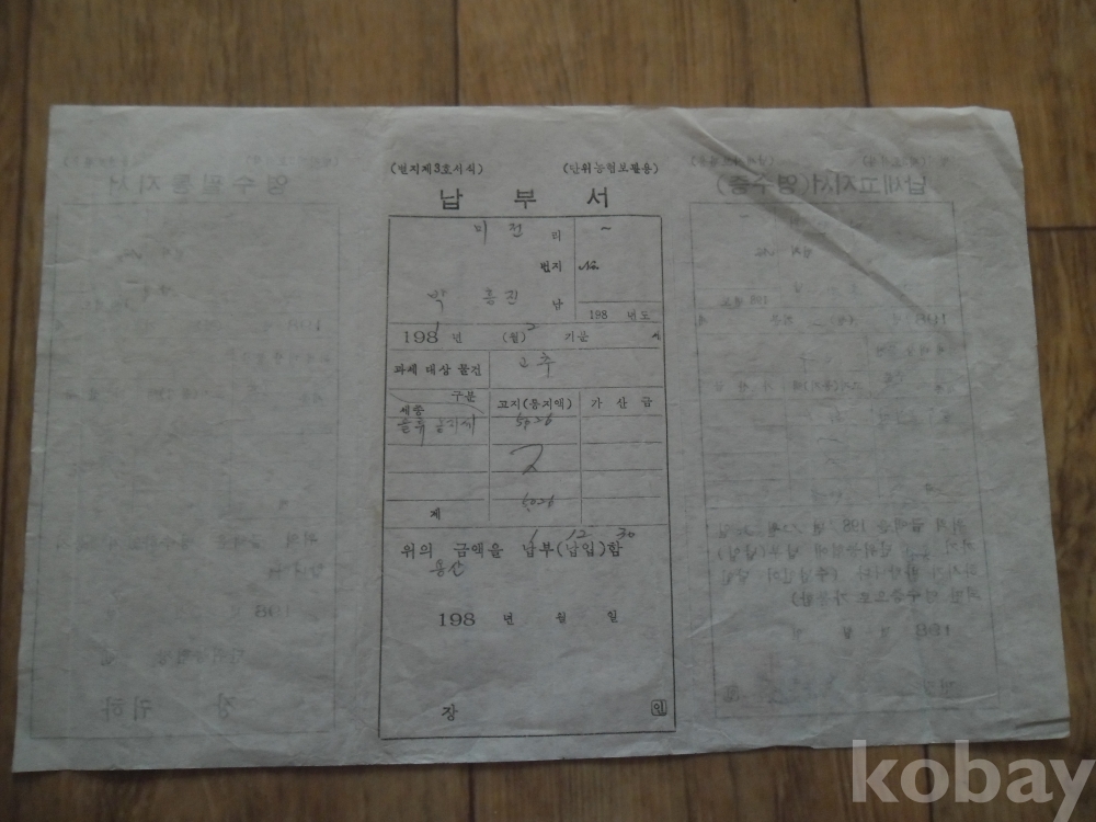 1981년 영동군용산면 발행 납세고지서(영수증)