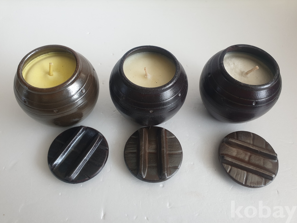 [천원경매] 2-032 항아리 캔들(3개, 지름 6cm, 높이 8cm, 미사용제품이나 3개중 1개 입구 깨짐)
