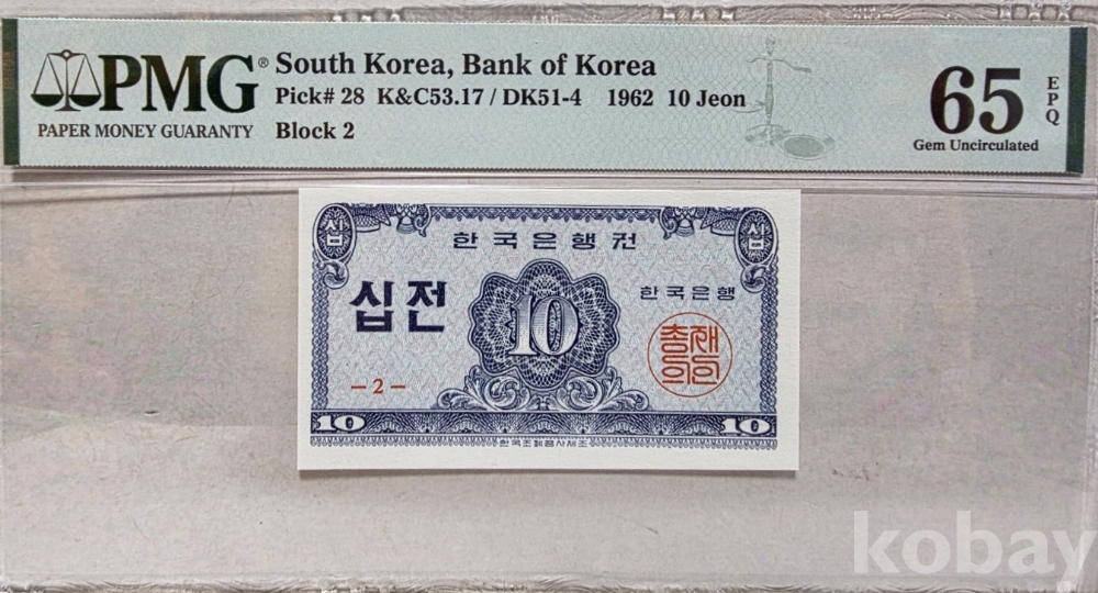 -대한민국 소액권 십원 PMG 65 등급 그레이딩 입니다.