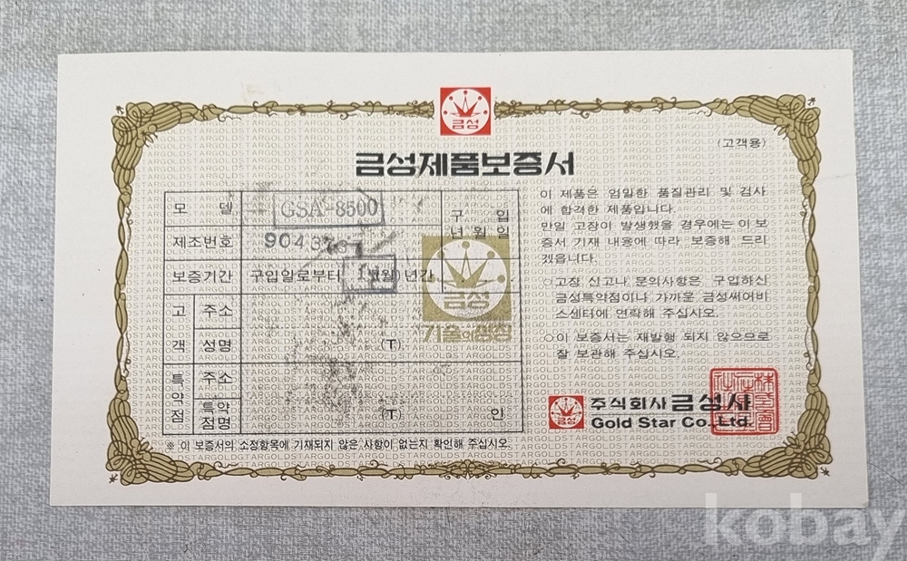 | 제조국 | 한국 | 연대 | 1980년~1999년 |