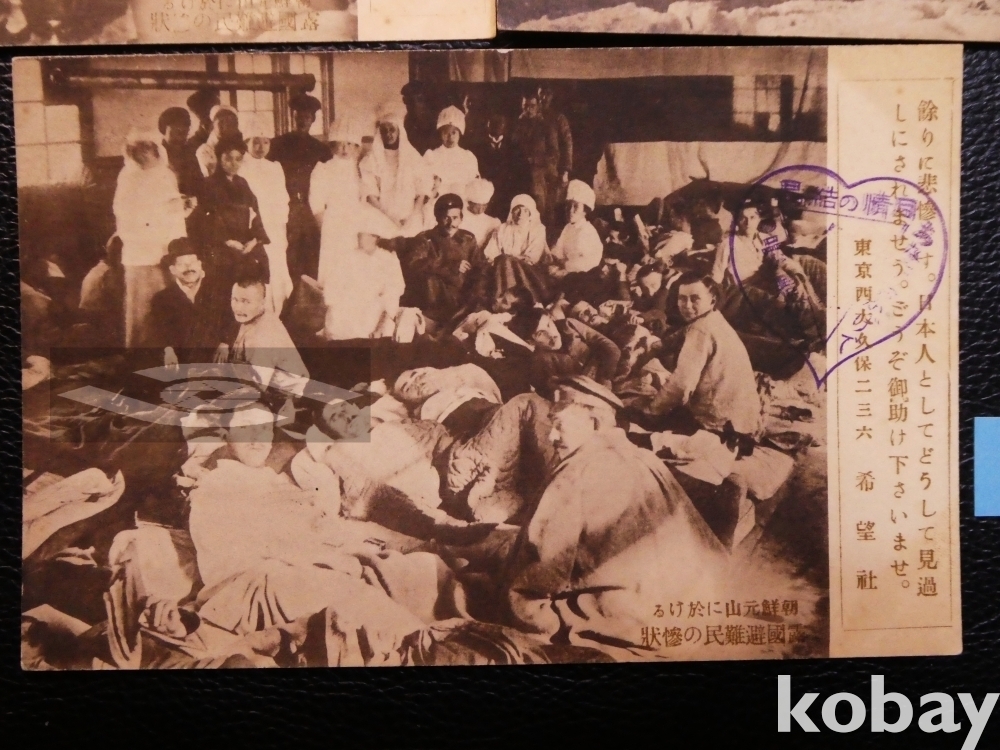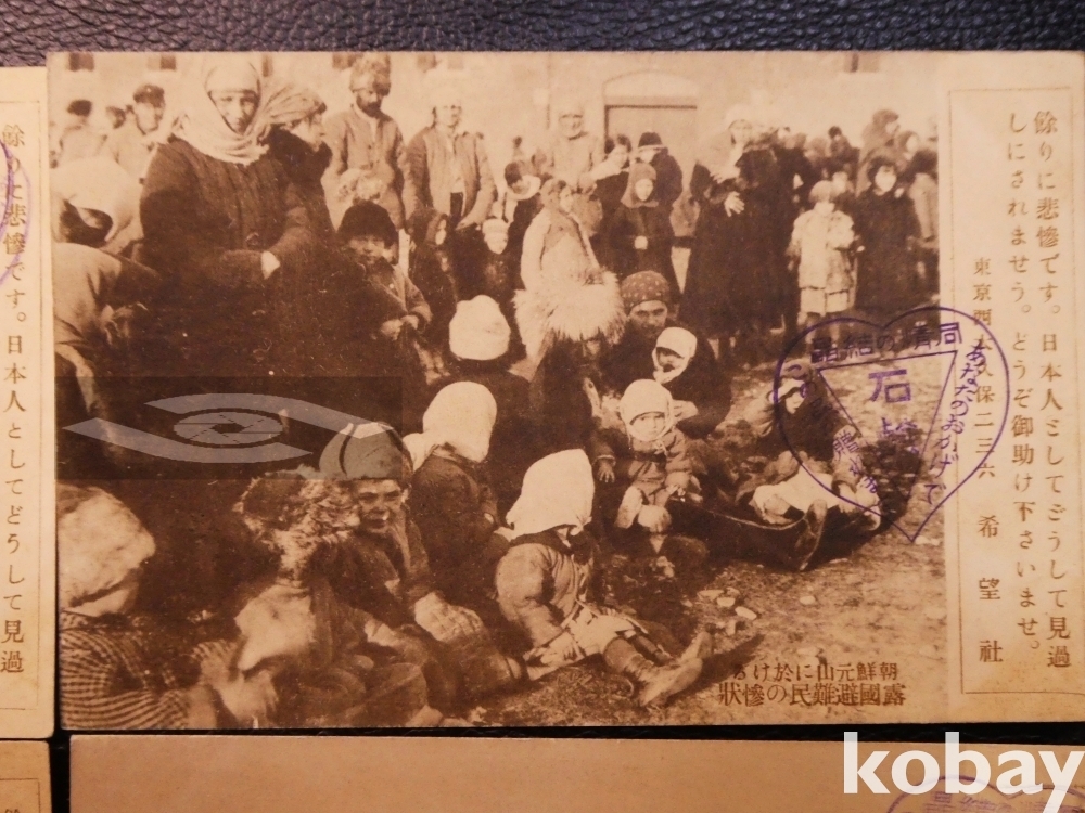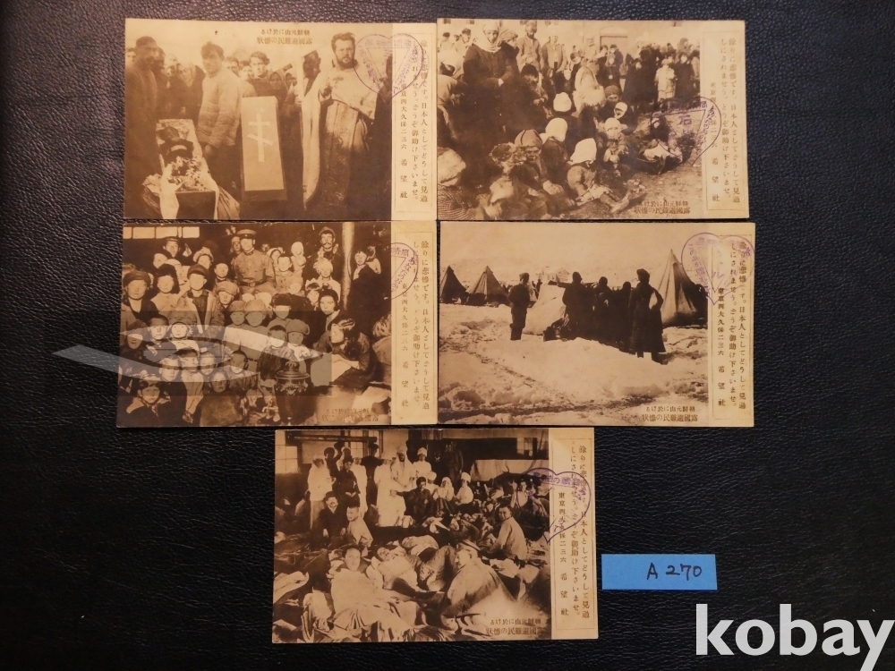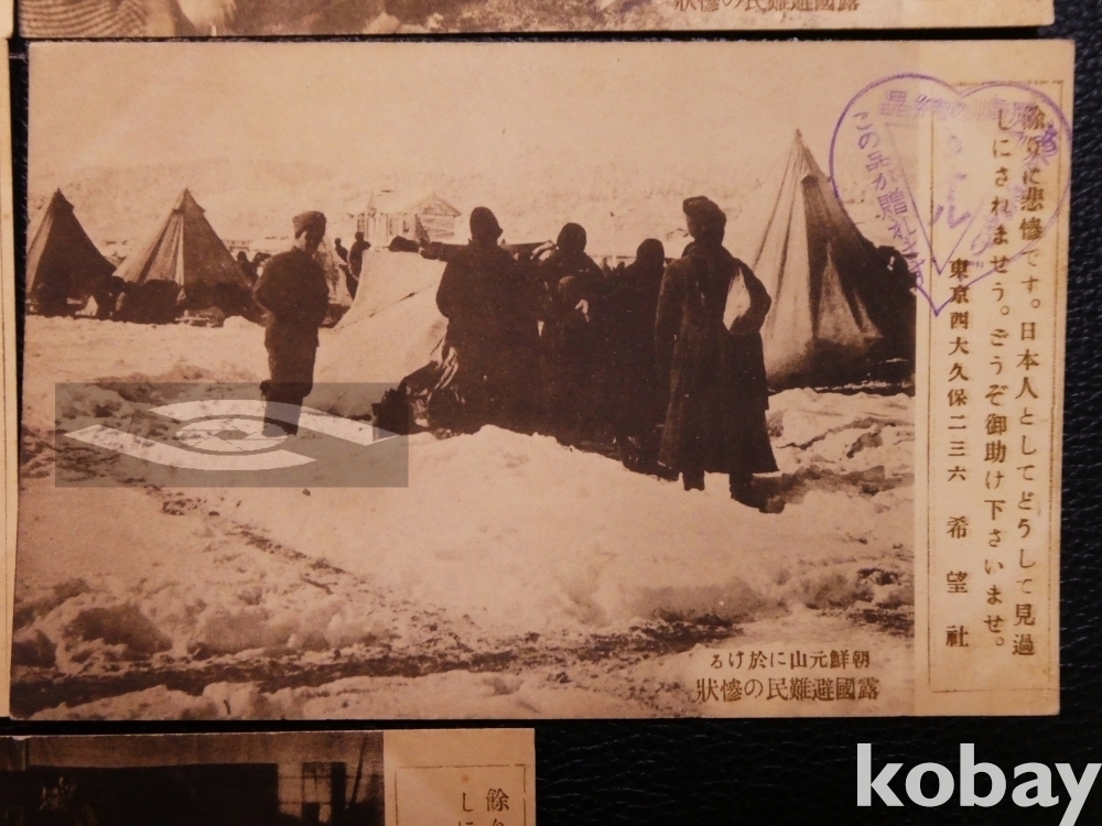 ▣근대한국 엽서(진본): 원산에서 러시아 피난민들의 참상과 구호 관련 엽서 5매 완전 세트.