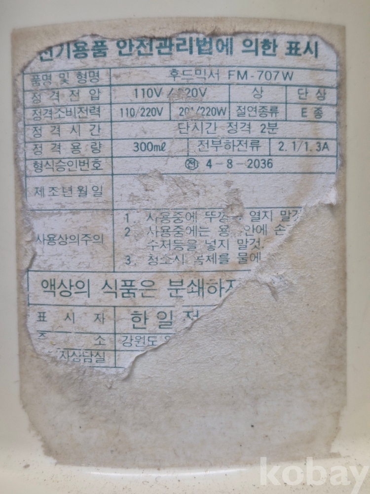 1980년대 실사용 가능한 한일 믹서기 정상작동 16*16*31