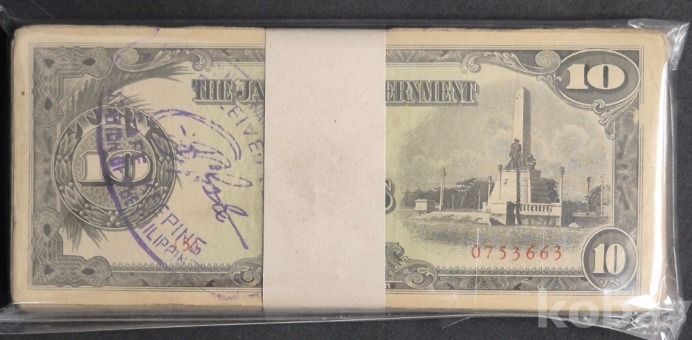 - 태평양 전쟁 일본 군표 10페소 필리핀 사용 약 100장 다발- 군용 수표
